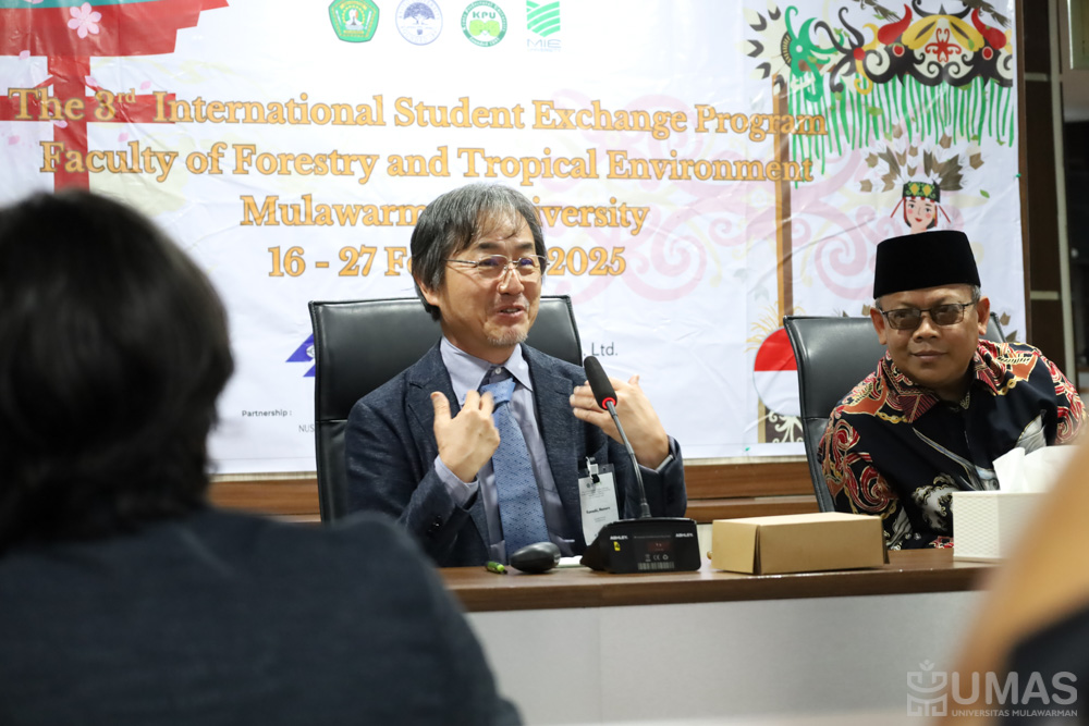 Universitas Mulawarman (UNMUL) dengan bangga menyambut kedatangan 16 mahasiswa dari tiga universitas ternama di Jepang dalam acara ‘Official Welcome The 3rd International Student Exchange Faculty of Forestry Mulawarman University Tahun 2025’ pada hari Selasa (18/02/2025) di Rektorat UNMUL. Acara ini dihadiri oleh Rektor UNMUL beserta Wakil Rektor Bidang Perencanaan, Kerja Sama, dan Humas, Direktur Pascasarjana, Dekan Fakultas Kehutanan (FAHUTAN) UNMUL beserta Wakil Dekan Bidang Kemahasiswaan dan Alumni, Ketua Lembaga Penelitian dan Pengabdian kepada Masyarakat (LP2M) UNMUL, dan Kepala UPT. Layanan Internasional UNMUL.
