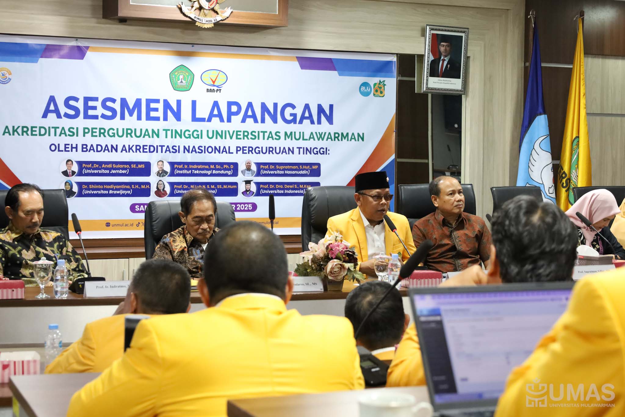 Universitas Mulawarman (UNMUL) menyambut kedatangan tim asesor Badan Akreditasi Nasional Perguruan Tinggi (BAN-PT) dalam rangka pelaksanaan asesmen lapangan akreditasi institusi perguruan tinggi. Kegiatan ini berlangsung pada 12–14 September 2025 di Kampus UNMUL, Samarinda, Kalimantan Timur (Kaltim).
