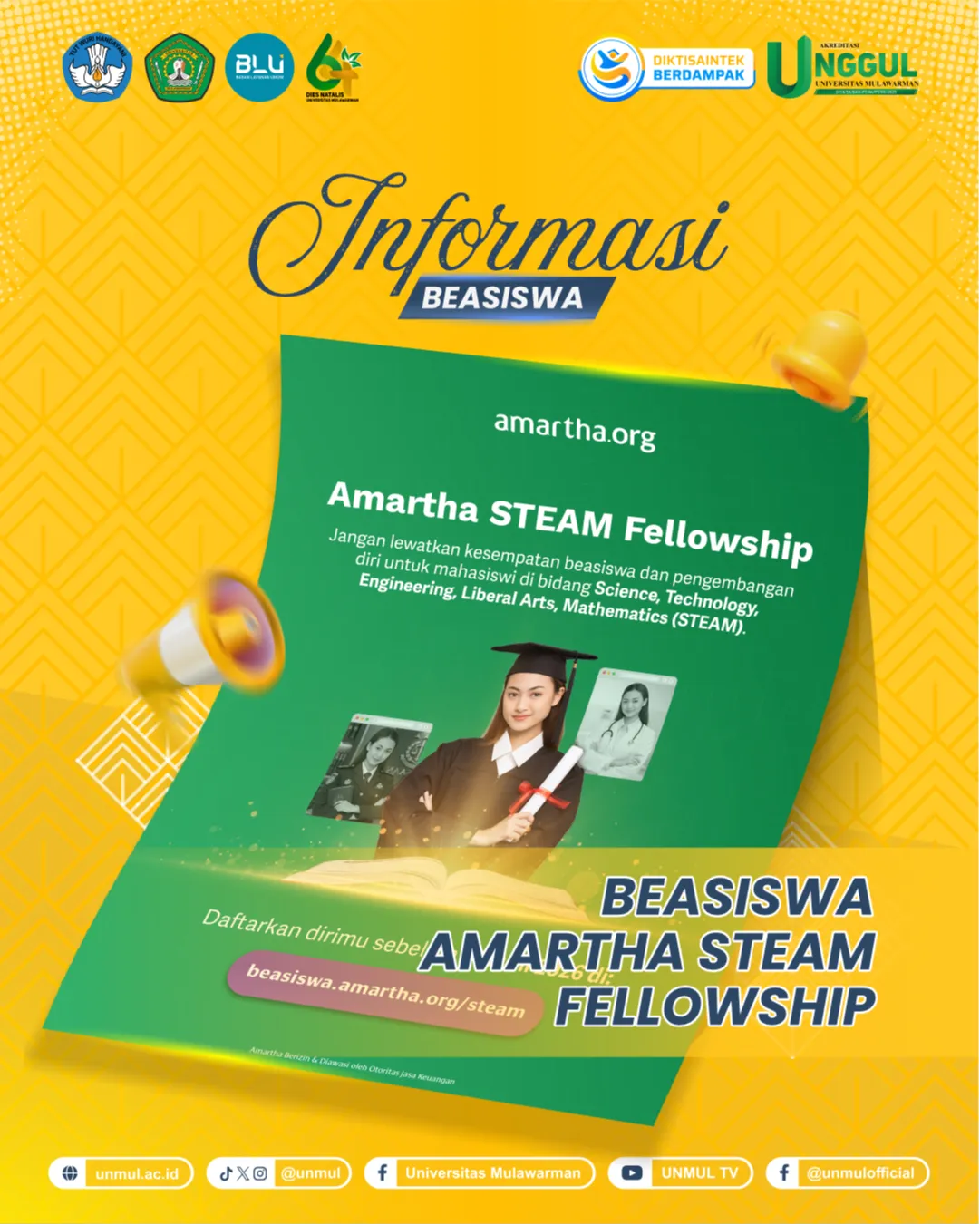 Daftarkan dirimu sebelum 21 Juni 2026 melalui website: www.beasiswa.amartha.org/steam