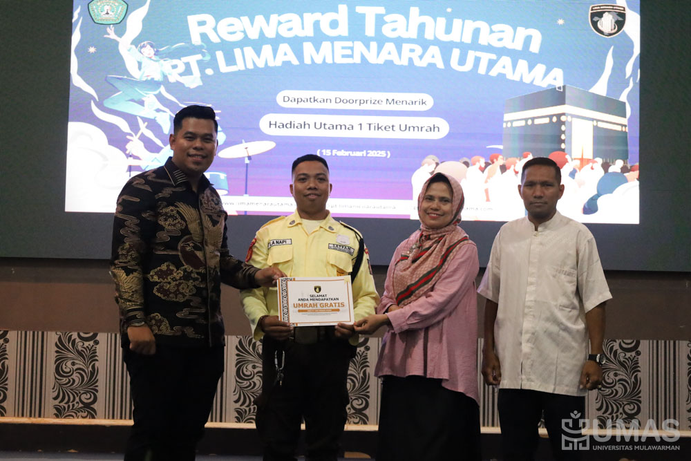 PT. Lima Menara Utama gelar acara tahunan, yakni pemberian penghargaan umrah dan reward kepada Satuan Pengamanan (Satpam) yang bertugas di lingkungan kampus UNMUL pada hari Sabtu (15/2/2025). Kegiatan ini merupakan bentuk apresiasi dari PT. Lima Menara Utama atas dedikasi dan loyalitas para petugas keamanan dalam menjaga ketertiban dan keamanan kampus.