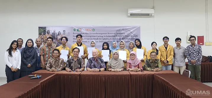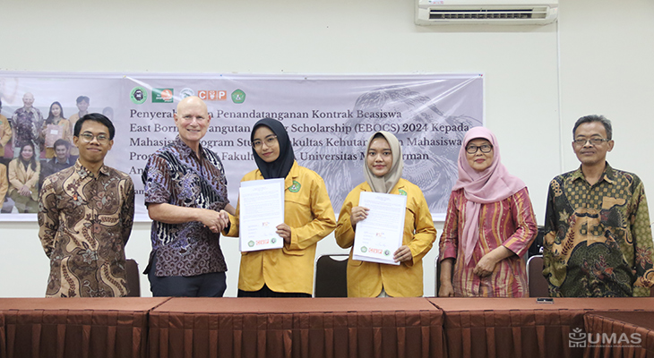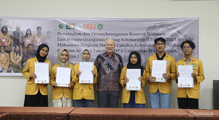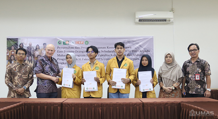 Fakultas Kehutanan (Fahutan) Universitas Mulawarman (UNMUL) mengadakan kegiatan penyerahan dan penandatanganan serah terima beasiswa yang keempat kalinya dari East Borneo Orangutan Caring Scholarship (EBOCS) 2024 kepada mahasiswa penerima yang berasal dari Fahutan dan Fakultas Matematika dan Ilmu Pengetahuan Alam (FMIPA) angkatan IV yang dilaksanakan di ruang Bengkirai, Fahutan UNMUL, Rabu (03/07/2024).