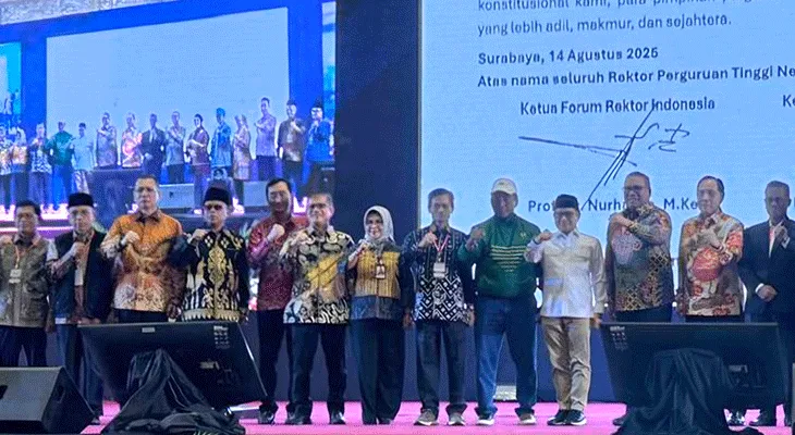 Rektor Universitas Mulawarman (UNMUL), Prof. Dr. Ir. H. Abdunnur, M.Si., IPU., ASEAN Eng., turut serta dalam Deklarasi Program Pemberdayaan Masyarakat Nasional di Universitas Negeri Surabaya (UNESA) pada 14 Agustus 2025. Acara ini menjadi wadah kolaborasi penting antara dunia pendidikan tinggi dan pemerintah.