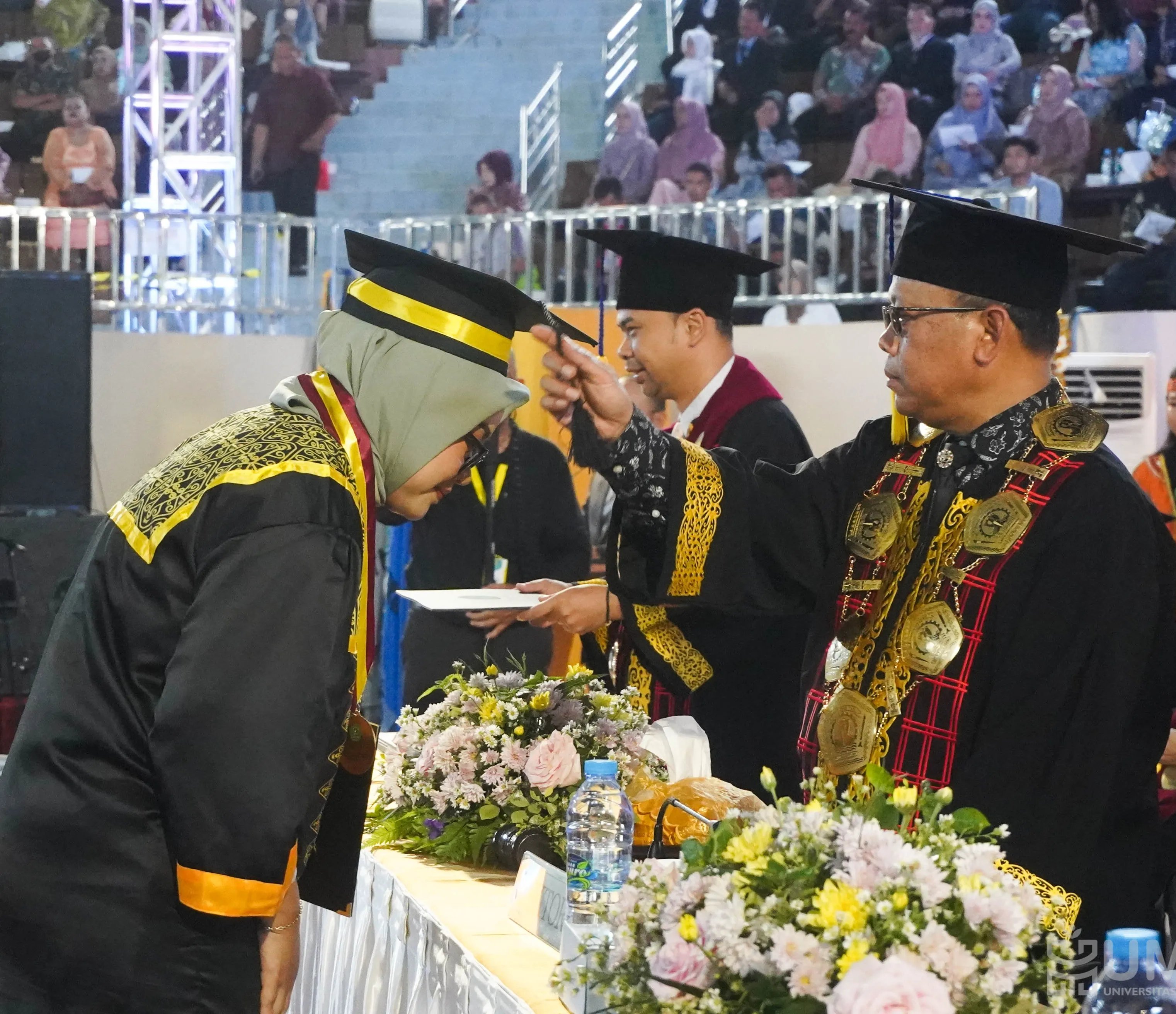 “Kami berharap para wisudawan dapat mengamalkan ilmu yang telah dipelajari dengan penuh tanggung jawab dan dedikasi, serta memberikan kontribusi terbaik bagi bangsa dan negara serta para alumni UNMUL dapat menjadi ilmuwan-ilmuwan dan individu yang mampu berpikir secara inovatif, memiliki kreativitas yang bermoral tinggi, serta menunjukkan tingkat kemandirian yang baik agar dapat bersaing secara kompetitif dan profesional,” ucap Prof. Dr. Ir. H. Abdunnur, M. Si., IPU., ASEAN Eng., selaku Rektor UNMUL dalam sambutannya.