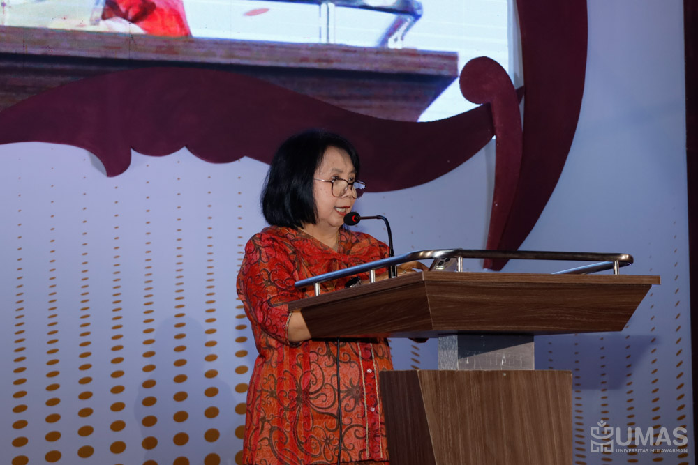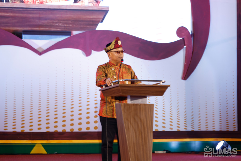 Rektor UNMUL Prof. Dr. Ir. H. Abdunnur, M.Si., IPU., ASEAN Eng., dalam sambutannya menyampaikan rasa syukur atas perjalanan 63 tahun UNMUL yang penuh capaian, prestasi, dan dedikasi para pendiri serta pimpinan terdahulu.