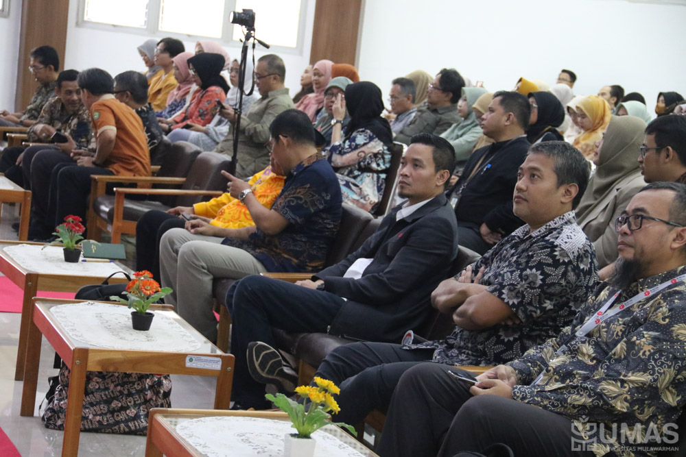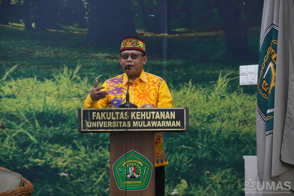 Rektor UNMUL, Prof. Dr. Ir. H. Abdunnur, M.Si., IPU., ASEAN Eng., yang juga turut hadir dan sekaligus membuka secara langsung Forum Komunikasi Ilmiah Kolaborasi Riset III.