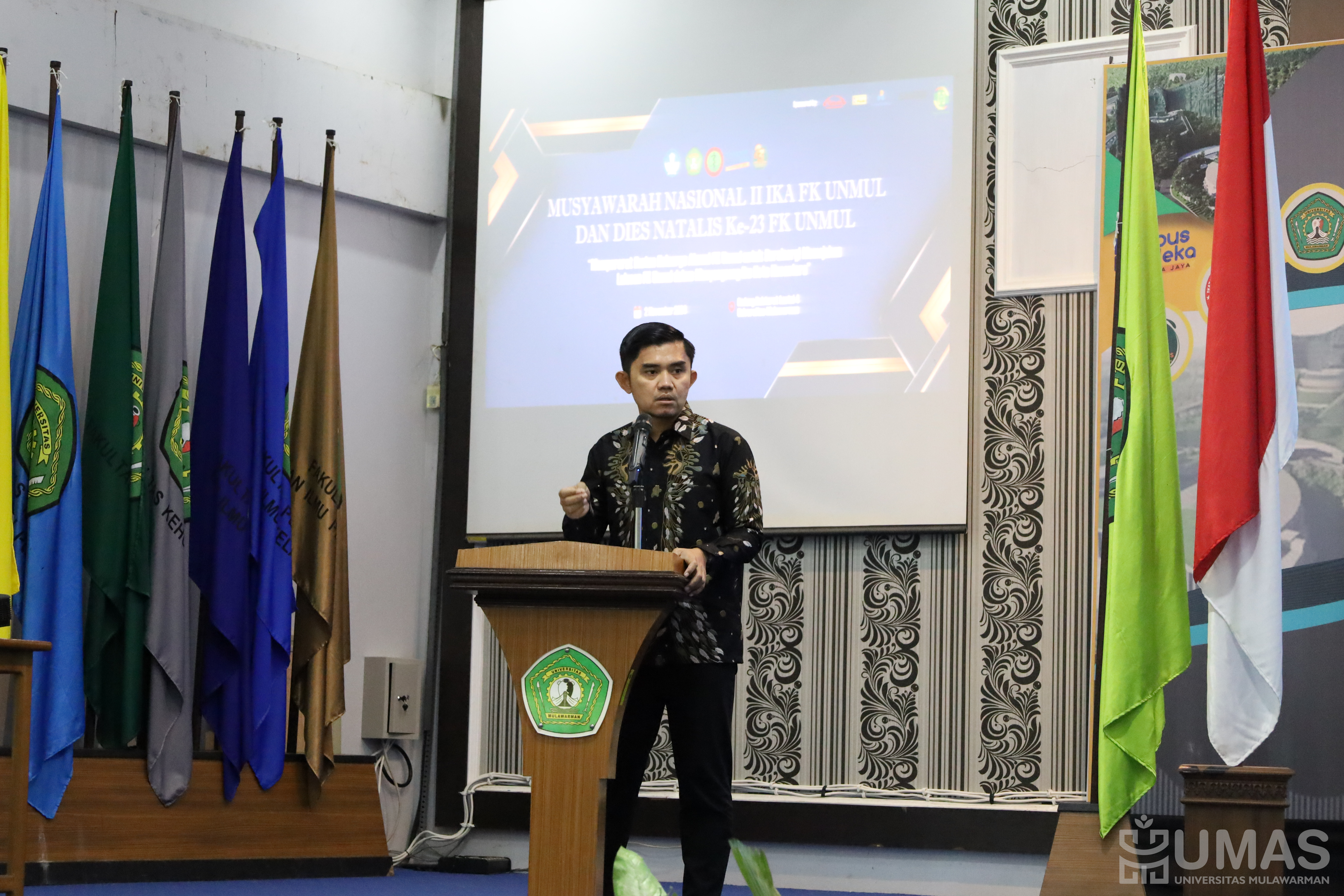 “Diskusi publik ini diharapkan dapat membangun sinergitas dan meningkatkan pemenuhan kebutuhan lulusan alumni kedokteran unmul,” ujar Ketua IKA FK UNMUL, dr. Aditya Fakultas Kedokteran (FK) Universitas Mulawarman (UNMUL) resmi berusia 23 tahun pada tanggal 2 Oktober 2024. Bersamaan dengan peringatan tersebut, turut diselenggarakan Musyawarah Nasional (Munas) Ikatan Keluarga Alumni (IKA) FK UNMUL di Rektorat UNMUL dalam rangka Dies Natalis ke-23, Sabtu (2/10/2024). Angga Kharisma dalam sambutannya. Lebih lanjut, dr. Aditya menjelaskan bahwa sampai dengan tahun 2024, total alumni FK UNMUL berjumlah 960 dan 508 alumni yang sudah mengambil sumpah.