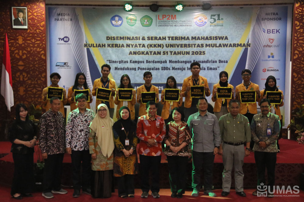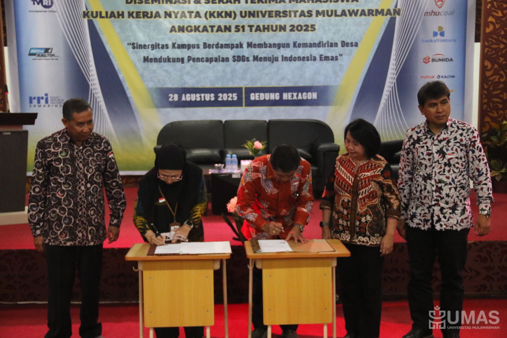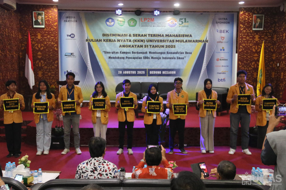 Universitas Mulawarman (UNMUL) menggelar Diseminasi dan Serah Terima Kembali Mahasiswa Kuliah Kerja Nyata (KKN) Angkatan ke-51 Tahun 2025 di Gedung Hexagon Fakultas Teknik UNMUL, Kamis (28/8/2025).