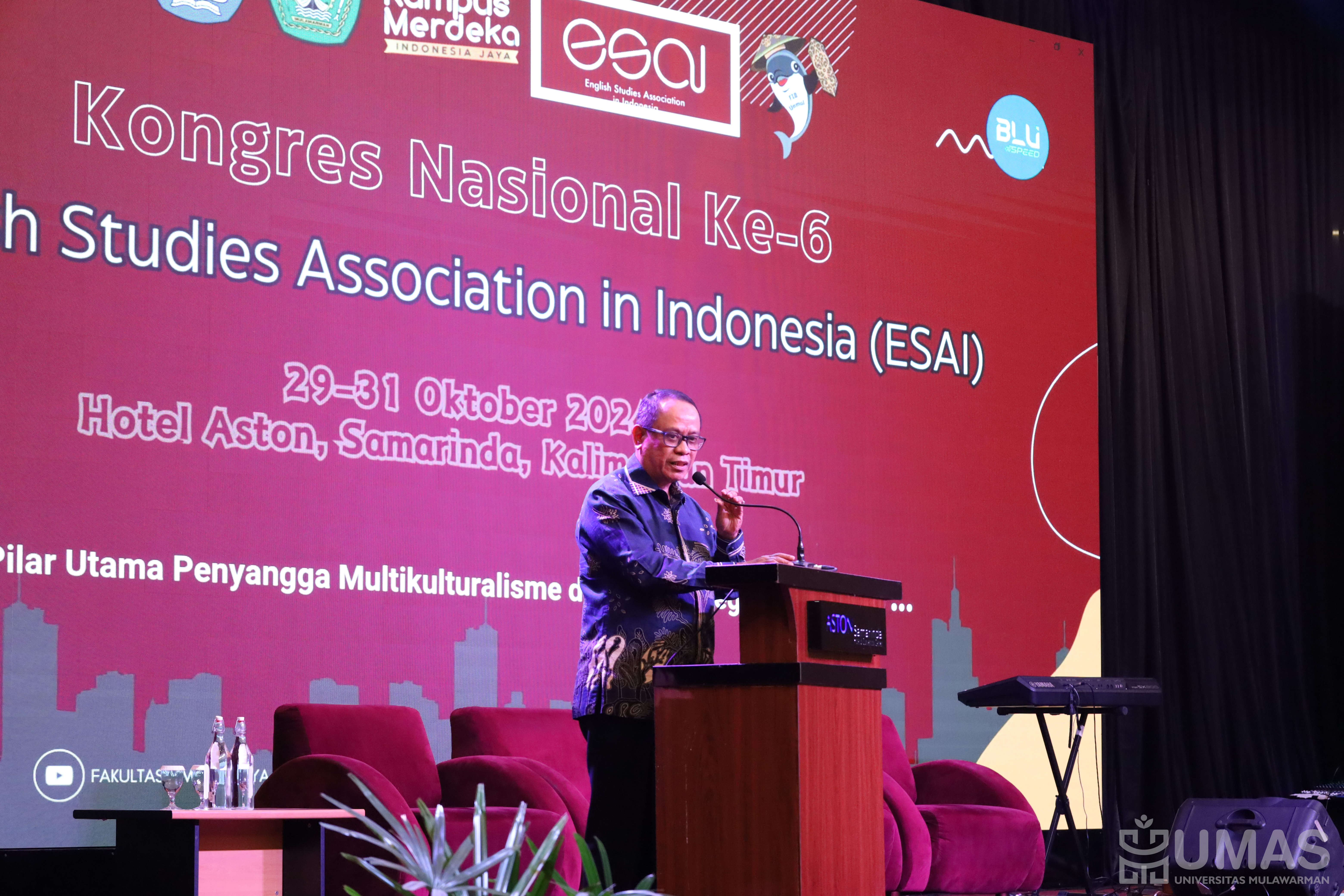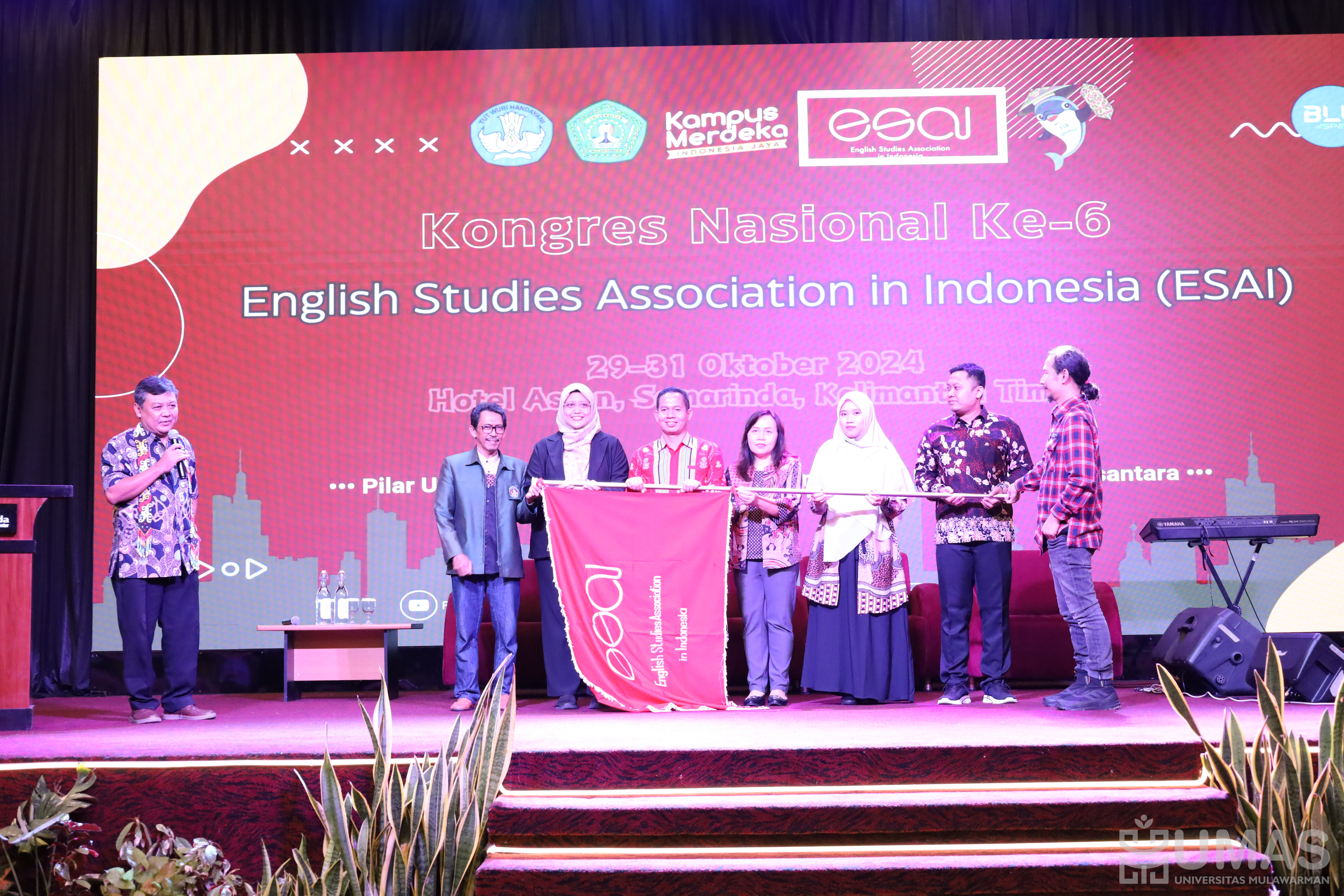 Universitas Mulawarman (UNMUL) menjadi tuan rumah dalam Kongres Nasional Ke-6 English Studies Association in Indonesia (ESAI). Acara yang berkolaborasi dengan Program Studi Sastra Inggris (Prodi Sasing) dari Fakultas Ilmu Budaya (FIB) UNMUL ini berlangsung di Hotel Aston selama 2 hari dan hari ketiga mengunjungi IKN. Pembukaan yang dilaksanakan Selasa (29/10/2024), sekaligus mengukuhkan anggota baru ESAI.