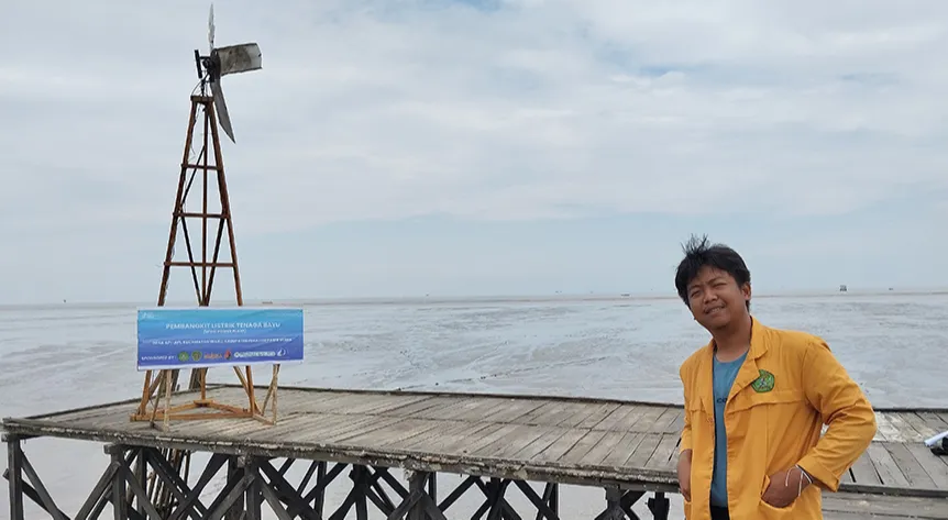 Mahasiswa program studi (Prodi) Ilmu Komunikasi, Fakultas Ilmu Sosial dan Ilmu Politik Universitas Mulawarman (FISIP UNMUL) yang tergabung dalam program KKN Angkatan ke-51 Tematik Program Kampung Iklim (ProKlim) Desa Api-Api, Kecamatan Waru, Kabupaten Penajam Paser Utara (PPU), berhasil merakit kincir angin listrik sederhana yang mampu mengecas aki 12V 50Ah. Inovasi ini menjadi bukti nyata sinergi antara mahasiswa, dunia usaha, dan masyarakat dalam mendukung energi terbarukan sekaligus ekowisata pesisir.