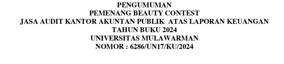 PENGUMUMAN PEMENANG BEAUTY CONTEST JASA AUDIT KANTOR AKUNTAN PUBLIK ATAS LAPORAN KEUANGAN TAHUN BUKU 2024