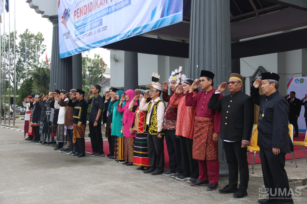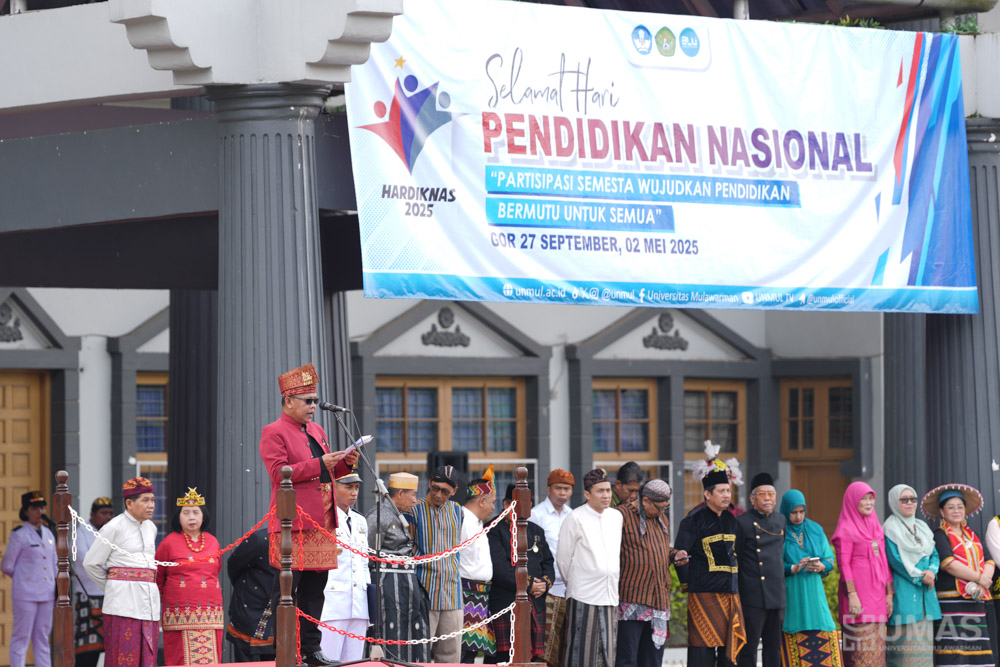 Universitas Mulawarman (UNMUL) memperingati Hari Pendidikan Nasional (Hardiknas) 2025 dengan penuh khidmat dalam sebuah upacara resmi yang dihadiri pimpinan universitas, dosen, mahasiswa, dan jajaran tenaga kependidikan. Kegiatan ini dilaksanakan di Halaman GOR 27 September UNMUL. Acara ini juga diisi dengan penghormatan khusus kepada almarhum Prof. H. Sarasa Hamongpranoto, S.H., M.Hum, salah satu tokoh penting dalam sejarah kampus.