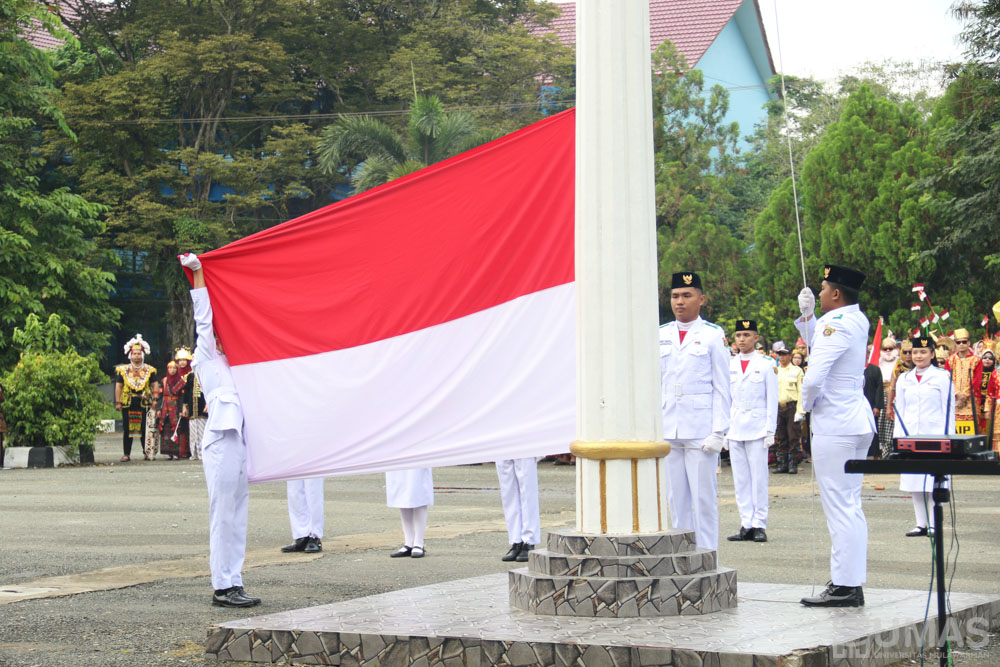 Universitas Mulawarman (UNMUL) menyelenggarakan upacara bendera dalam rangka memperingati Hari Ulang Tahun (HUT) Kemerdekaan Republik Indonesia (RI). Upacara dilaksanakan di Halaman Gedung GOR 27 September UNMUL pada Sabtu (17/8/2024).