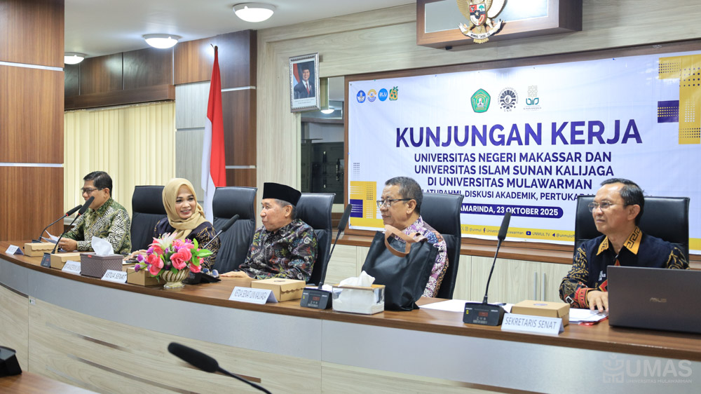 Universitas Mulawarman (UNMUL) menjadi tuan rumah kegiatan kunjungan kerja tiga lembaga senat perguruan tinggi, yakni Senat Universitas Negeri Makassar (UNM) dan Senat Universitas Islam Negeri (UIN) Sunan Kalijaga Yogyakarta. Pertemuan ini berlangsung dalam suasana hangat dan penuh kekeluargaan di Gedung Rektorat UNMUL, Kamis (23/10/2025) dengan tujuan memperkuat sinergi antarperguruan tinggi dalam bidang akademik, kelembagaan, serta peningkatan integritas dosen dan pengelolaan senat.