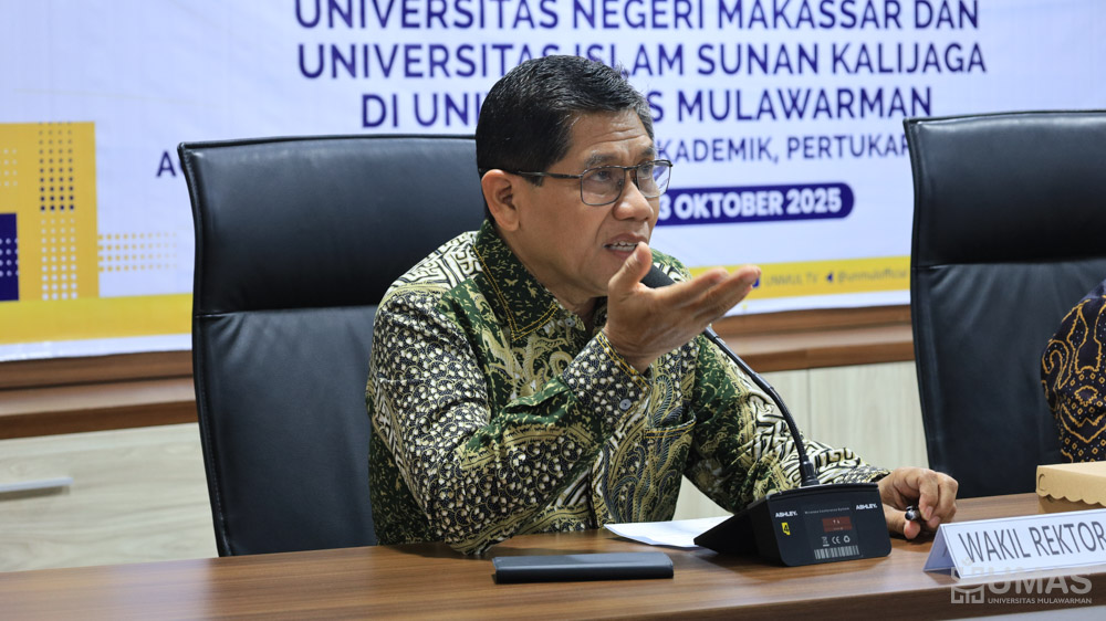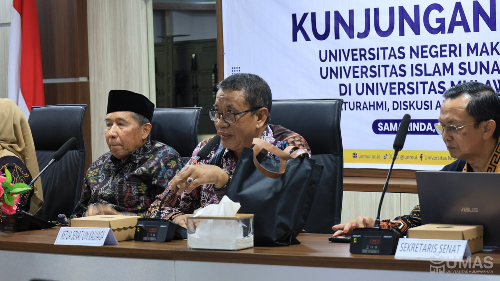 Rektor UNMUL yang diwakili oleh Wakil Rektor Bidang Akademik UNMUL, Prof. Dr. Lambang Subagiyo, M.Si., menyampaikan apresiasi atas kunjungan dua institusi tersebut. Dalam sambutannya, ia menekankan pentingnya sinergi antarsenat sebagai langkah strategis dalam menjaga mutu akademik dan marwah universitas. Prof. Lambang juga memperkenalkan profil UNMUL yang memiliki 14 fakultas dan satu program pascasarjana, serta menjelaskan komitmen universitas terhadap isu lingkungan dan pembangunan berkelanjutan di Kalimantan Timur (Kaltim).