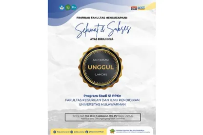 Program Studi (Prodi) S1 Pendidikan Pancasila dan Kewarganegaraan (PPKn) Fakultas Keguruan dan Ilmu Pendidikan (FKIP) Universitas Mulawarman (UNMUL) berhasil meraih Akreditasi Unggul dari Lembaga Akreditasi Mandiri Kependidikan (LAMDIK).
