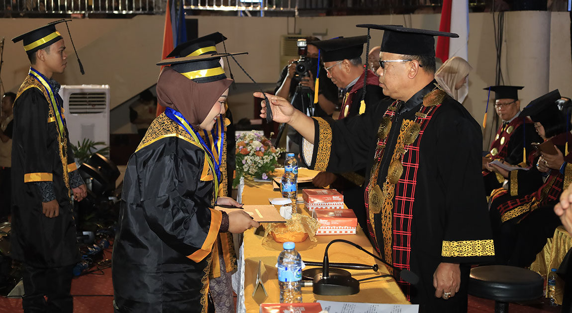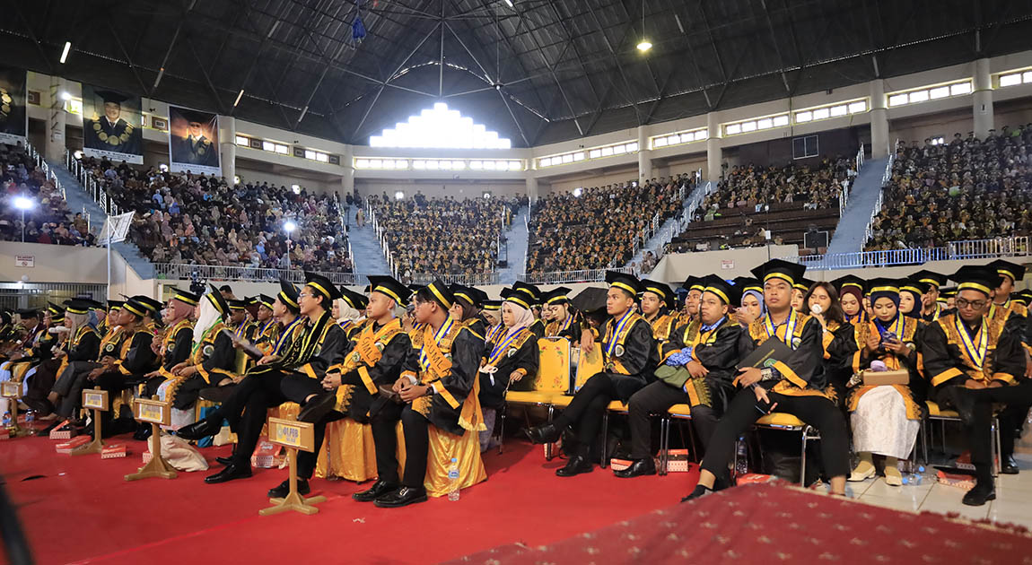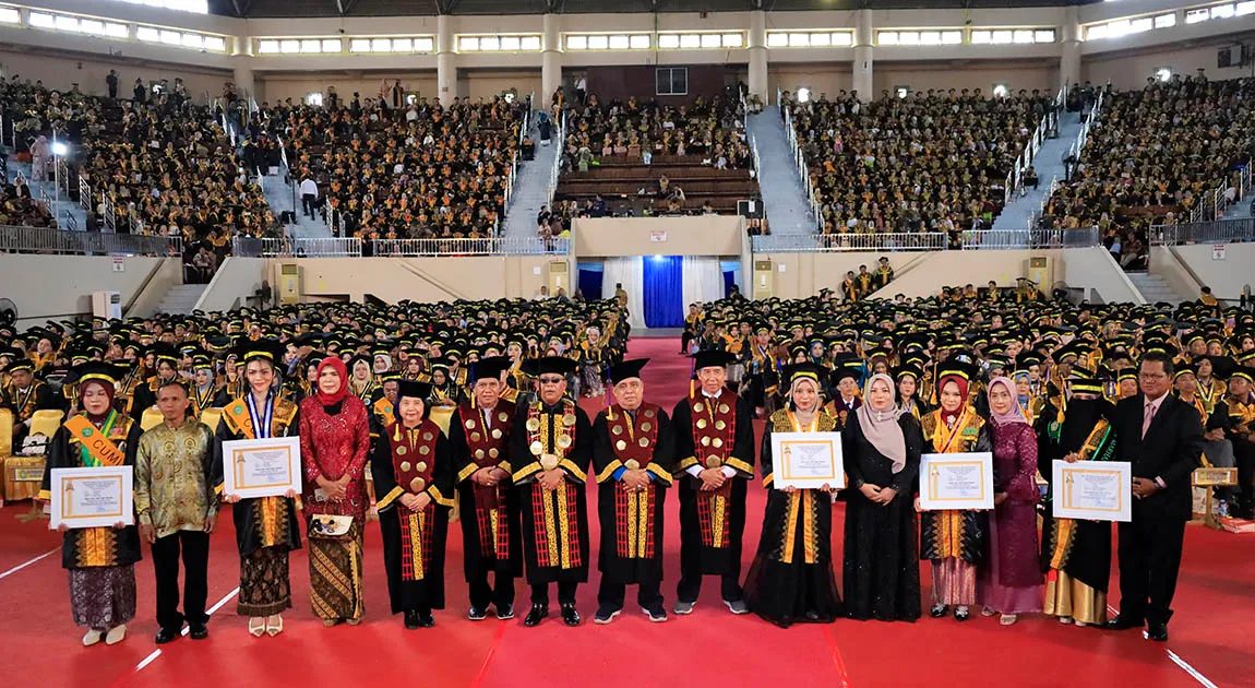 Prof. Lambang juga membacakan daftar lulusan terbaik tingkat Universitas didasarkan pada pertimbangan Indeks Prestasi (IP), Waktu Penyelesaian Studi, dan Predikat yang dicapai sebagai berikut: Program Doktor Marhanidari Program Studi Manajemen Pendidikan, Fakultas Keguruan dan Ilmu Pendidikan (FKIP) dengan IPK. 3,94 Masa Studi 2 Tahun 8Bulan Predikat Sangat Memuaskan, Program Pascasarjana Atik Suhargiati dari Program Studi Kesehatan Masyarakat, Fakultas Kesehatan Masyarakat (FKM) IPK. 4Masa Studi 2 Tahun 1 Bulan Predikat Dengan Pujian, Program Profesi Latifah Safitri dari Program Studi Apoteker, Fakultas Farmasi IPK. 3,95 Masa Studi 1 Tahun 6 Bulan Predikat Dengan Pujian, Program Sarjana Jacinta Maharani Mulawarman dari Program Studi Sastra Inggris, Fakultas Ilmu Budaya IPK. 3,99 Masa Studi 3Tahun 6 Bulan Predikat Dengan Pujian, dan Program Diploma Orin Dwiyanti dari Program Studi Keperawatan, Fakultas Kedokteran IPK. 3,93 Masa Studi 3 Tahun 4 Bulan Predikat Dengan Pujian.