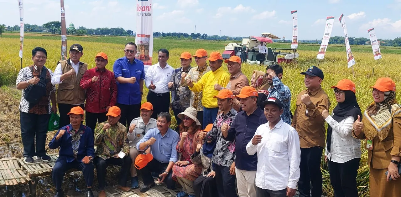 Rektor Universitas Mulawarman (UNMUL), Prof. Dr. Ir. H. Abdunnur, M.Si., IPU., ASEAN Eng., didampingi Dekan Fakultas Pertanian (Faperta) UNMUL, Prof. Dr. Ir. H. Rusdiansyah, M.Si., menghadiri kegiatan Panen Raya yang dilaksanakan oleh Menteri Pertanian (Mentan) Republik Indonesia (RI), Dr. Ir. H. Andi Amran Sulaiman, M.P., di Desa Trepan, Kecamatan Babat, Kabupaten Lamongan, Provinsi Jawa Timur, Kamis (18/4/2024).