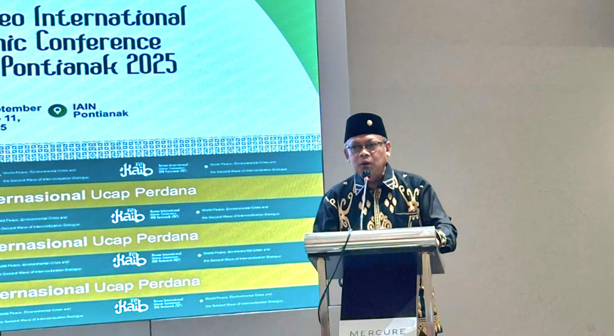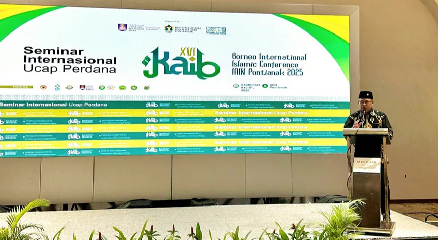 Rektor Universitas Mulawarman (UNMUL), Prof. Dr. Ir. H. Abdunnur, M.Si., IPU., ASEAN Eng., menjadi pembicara utama (keynote speaker) dalam Seminar Internasional Konferensi Antarbangsa Islam Borneo (KAIB) ke-16 di Pontianak, Rabu (10/9/2025).