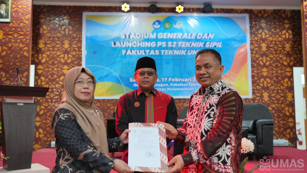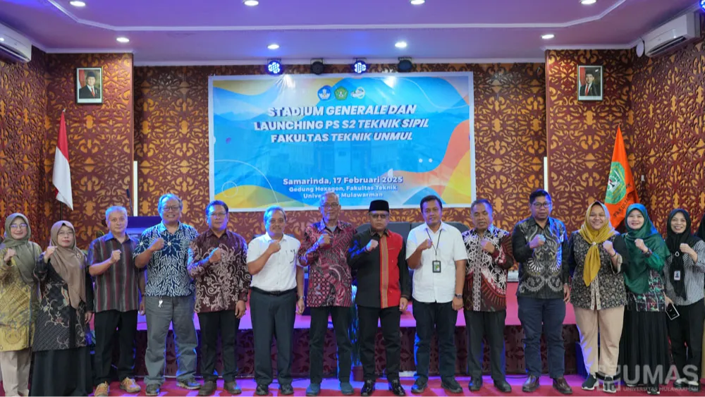Universitas Mulawarman (UNMUL) resmi meluncurkan Program Magister Teknik Sipil dalam acara ‘Stadium Generale dan Launching Program Magister Teknik Sipil’ yang berlangsung di Gedung Hexagon Fakultas Teknik (FT) UNMUL pada hari Senin (17/02/2025). Kegiatan ini dihadiri oleh Rektor UNMUL, Ahli Iklim dari Universitas Tadulako, Kepala Badan Wilayah Sungai Kalimantan Timur (Kaltim) IV, Dekan Fakultas Teknik beserta jajaran, para dosen, Kepala Laboratorium, dan para mahasiswa.