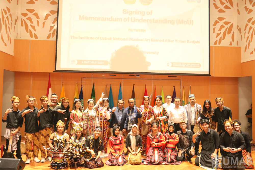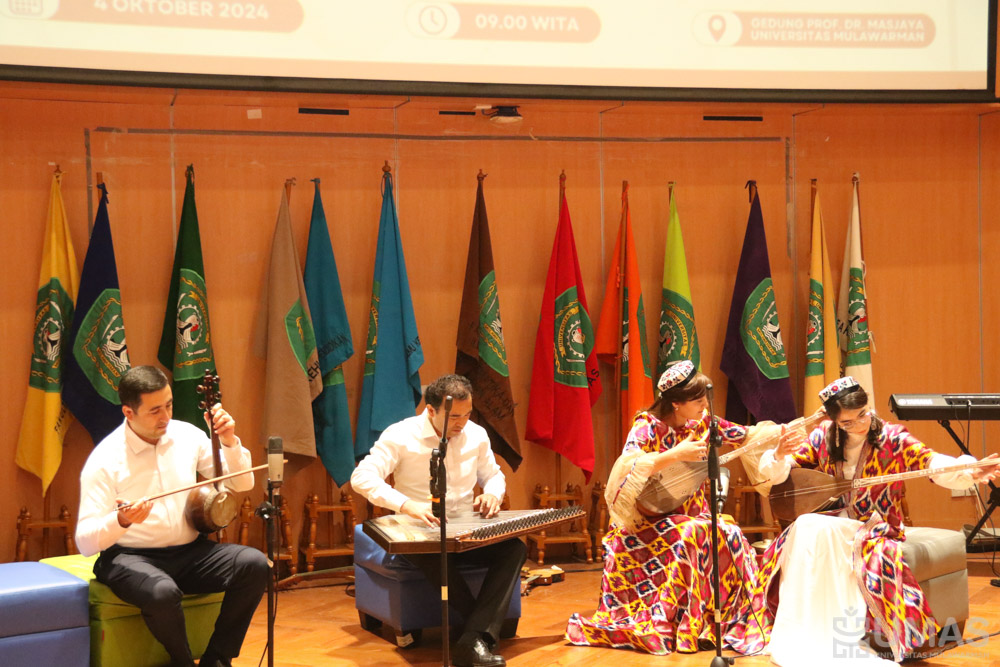 Penampilan tarian dan musik tradisional yang dibawakan oleh Fakultas Ilmu Budaya (FIB) Universitas Mulawarman (UNMUL) memukau para hadirin di Ruang Teater, Gedung Prof. Dr. H. Masjaya, M.Si., UNMUL Hub, terutama tamu undangan yang berasal dari The Institute of Uzbek National Musical Art Named After Yunus Radjabi. Kedatangan beberapa mahasiswa beserta Rektor salah satu universitas di Uzbekistan tersebut guna untuk menandatangani Memorandum of Understanding (MoU) dengan UNMUL dan FIB UNMUL.
