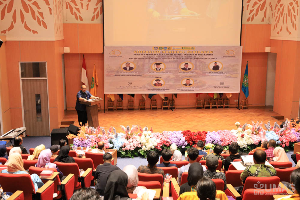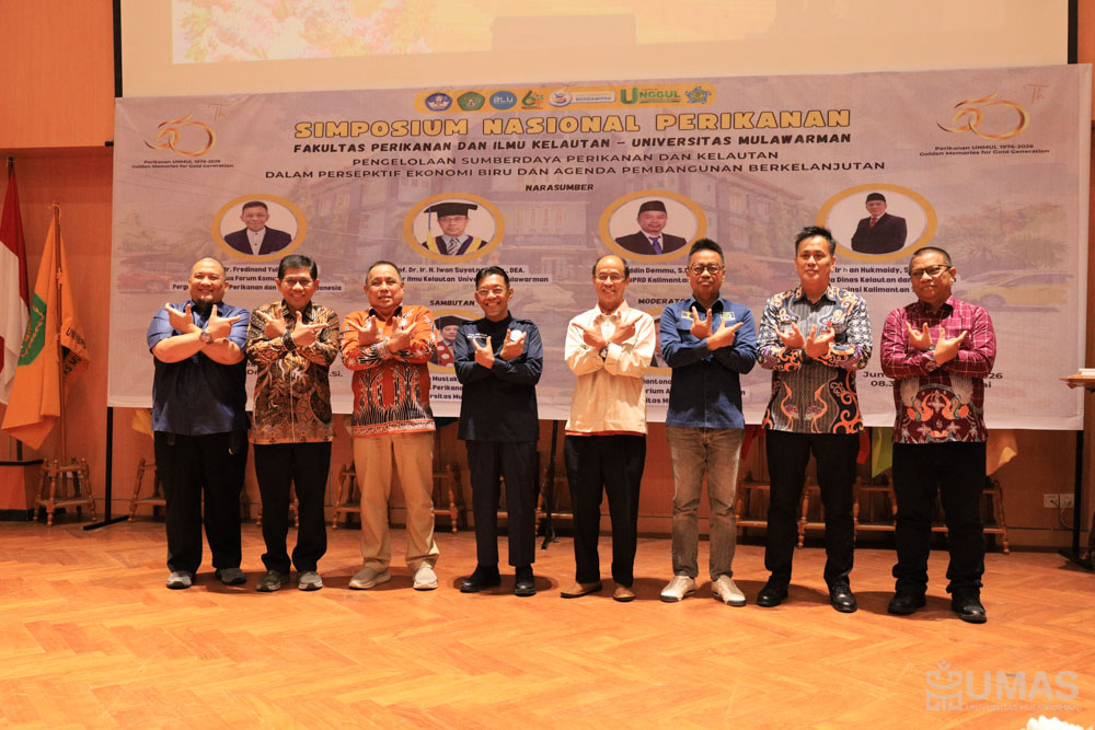Fakultas Perikanan dan Ilmu Kelautan (FPIK) Universitas Mulawarman (UNMUL) menggelar Simposium Nasional dalam rangka Dies Natalis ke-50 FPIK UNMUL, Jumat (6/2/2026). Kegiatan ini mengangkat tema “Pengelolaan Sumber Daya Perikanan dan Kelautan dalam Perspektif Ekonomi Biru dan Agenda Pembangunan Berkelanjutan”. Kegiatan simposium nasional diselenggarakan di Lecture Theatre, Gedung Prof. Dr. H. Masjaya, M.Si., UNMUL HUB.