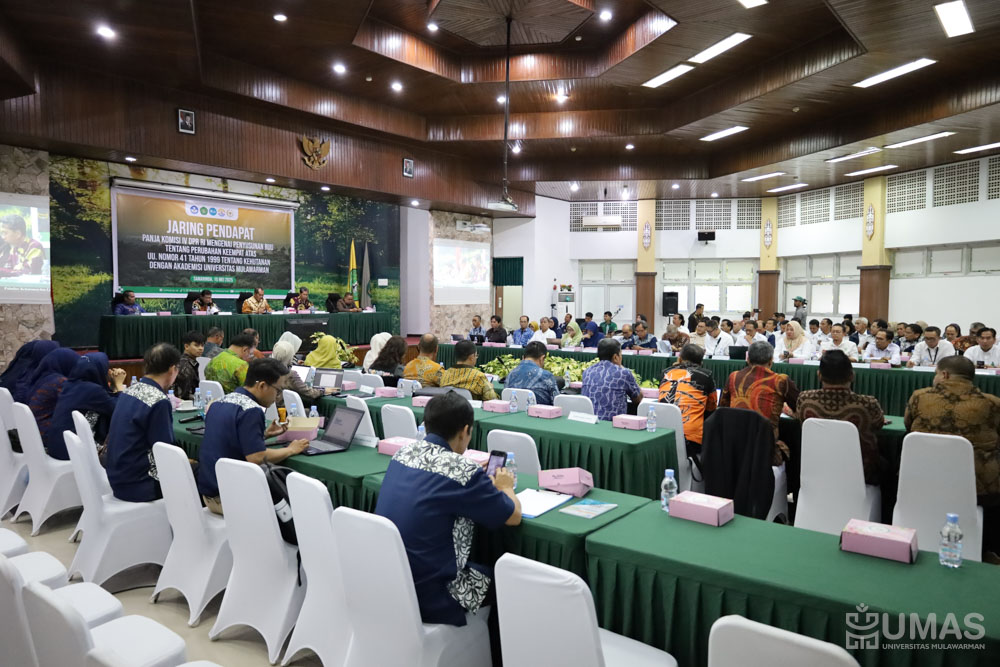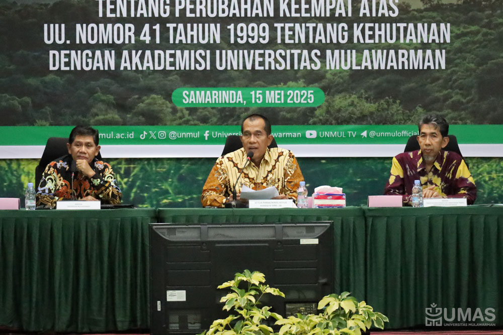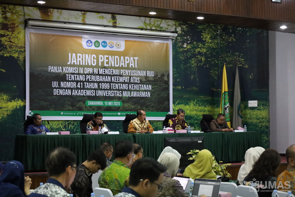 Universitas Mulawarman (UNMUL) bersama dengan Komisi IV Dewan Perwakilan Rakyat Republik Indonesia (DPR RI) mengadakan kegiatan Jaring Pendapat Panitia Kerja (Panja) Penyusunan RUU Tentang Perubahan Keempat Atas UU Nomor 41 Tahun 1999 Tentang Kehutanan Dengan Akademisi UNMUL. Kegiatan ini dihadiri oleh berbagai pemangku kepentingan yang berperan penting pada aspek kehutanan, diantaranya dari Komisi IV DPR RI, Kementerian Kehutanan, Dinas Kehutanan Provinsi Kalimantan Timur (Kaltim), dan Akademisi UNMUL yang dilaksanakan di Gedung Bundar Fakultas Kehutanan dan Lingkungan Tropis UNMUL, Kamis (15/5/2025).