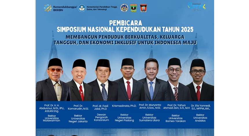 Rektor Universitas Mulawarman (UNMUL), Prof. Dr. Ir. H. Abdunnur, M.Si., IPU., ASEAN Eng., menjadi salah satu pembicara utama di Simposium Nasional Kependudukan Tahun 2025. Acara yang diselenggarakan oleh Kementerian Kependudukan dan Pembangunan Keluarga RI/BKKBN di Universitas Negeri Padang (UNP) ini berfokus pada isu-isu penting seputar kependudukan di Indonesia.