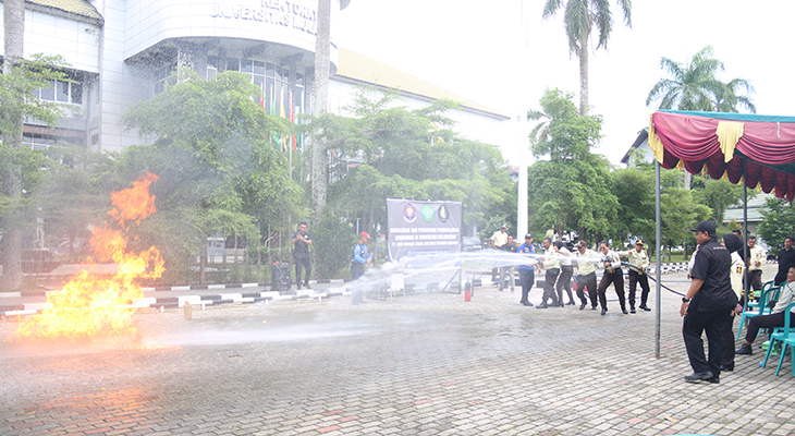 Kepala Biro Umum dan Keuangan UNMUL, H. Bahriansyah, S.H., M.Si., menyampaikan perhatiannya pada fasilitas untuk pemadaman kebakaran di Lingkungan UNMUL yang masih terbatas, sehingga akan mengakibatkan kerugian besar nantinya jika terjadi kebakaran dan tidak ada alat pemadam untuk tindakan pertama memadamkan api.