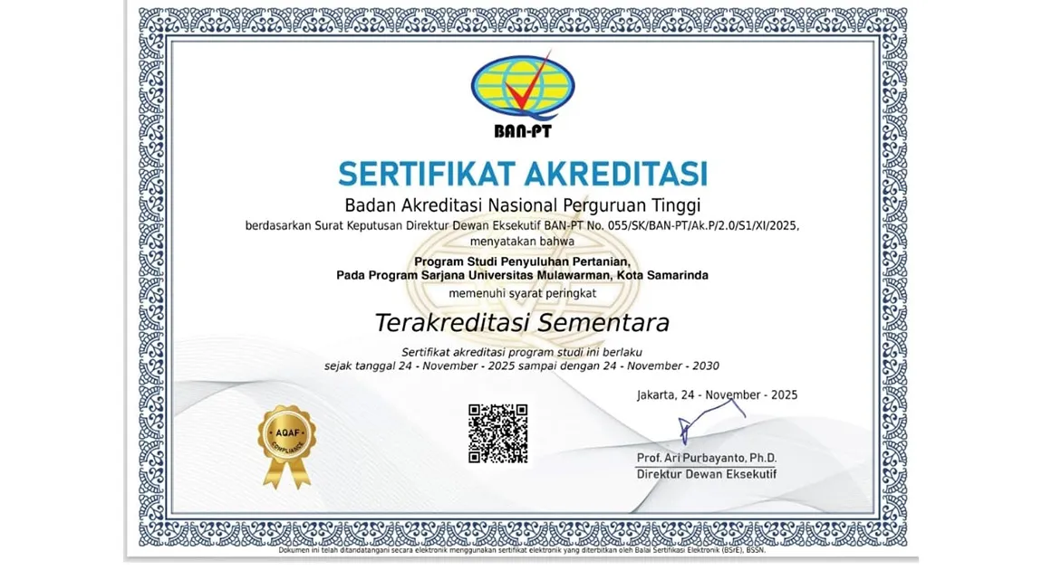Universitas Mulawarman (UNMUL) kembali menorehkan prestasi gemilang di penghujung tahun dengan diresmikannya pembukaan tiga program studi (Prodi) baru yang juga langsung meraih Akreditasi Pertama Sementara dari Badan Akreditasi Nasional Perguruan Tinggi (BAN-PT).