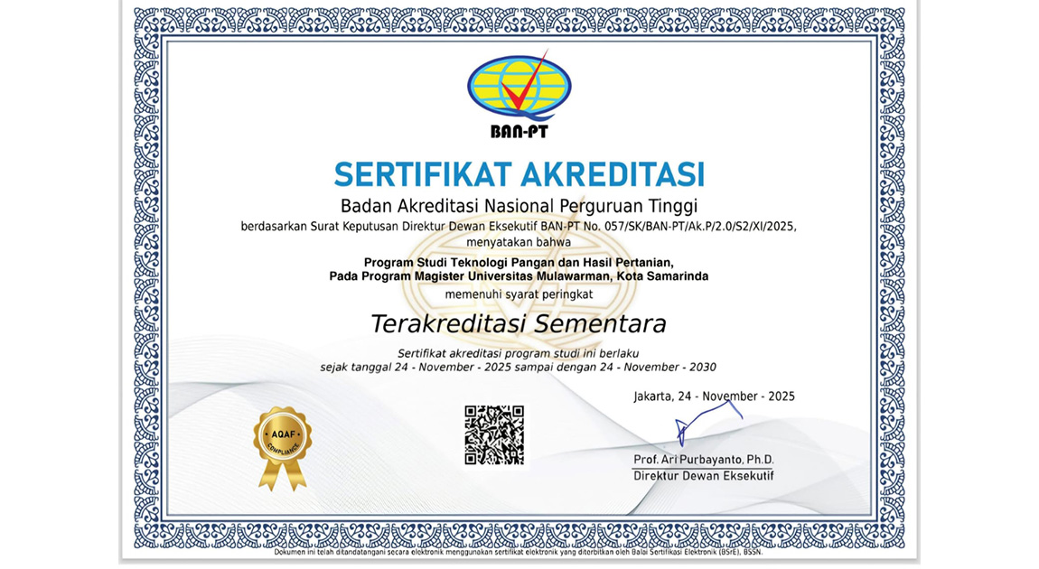 Rektor UNMUL, Prof. Dr. Ir. H. Abdunnur, M.Si., IPU., ASEAN Eng., mengatakan pembukaan dan akreditasi perdana ini menandakan kesiapan UNMUL dalam memberikan kontribusi yang lebih luas terhadap pendidikan tinggi, khususnya dalam bidang pertanian, teknologi pangan, dan kajian budaya, serta menjawab kebutuhan masyarakat dan pembangunan daerah.