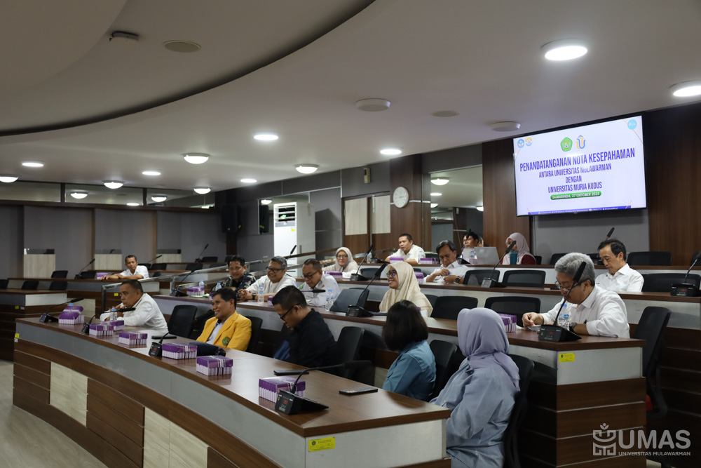 Universitas Mulawarman (UNMUL) dan Universitas Muria Kudus (UMK) resmi menandatangani nota kesepahaman (MoU) sebagai bentuk komitmen bersama dalam memperkuat kerja sama akademik, penelitian, dan pengabdian kepada masyarakat. Kegiatan penandatanganan tersebut berlangsung pada Senin (27/10/2025), di Ruang Rapat lantai 3 Rektorat UNMUL.