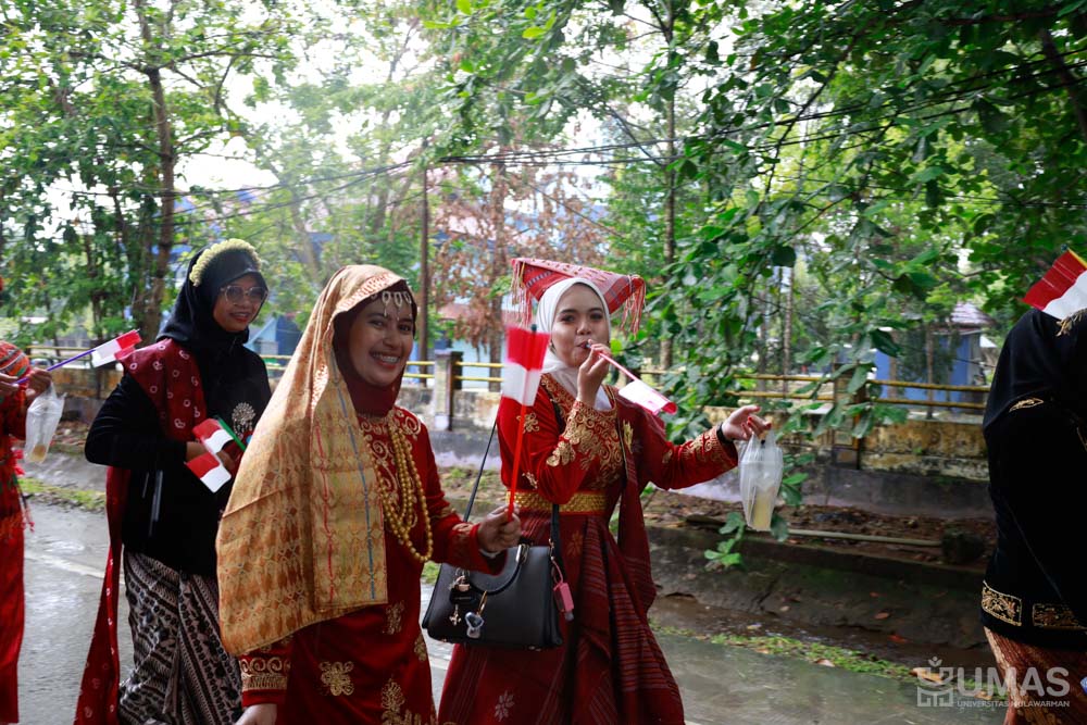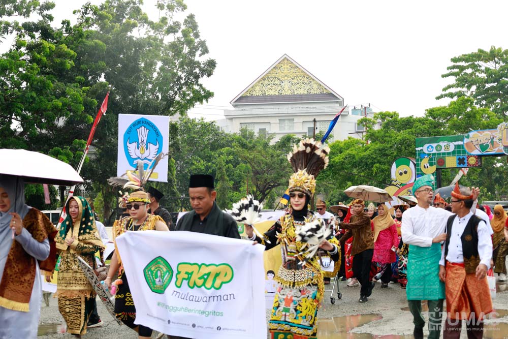 “Peserta internal parade meliputi 14 fakultas, program pascasarjana, lembaga, UPT, unit keamanan, rektorat, serta perpustakaan. Dari eksternal, hadir pula BPD Kaltimtara, Bank Mandiri, BSI Samarinda, STIMIK Widya Cipta Dharma, UINSI, Dinas Pendidikan Kota Samarinda, Dewan Budaya Nusantara, DPP Pusaka Kalimantan, serta mitra lainnya yang menampilkan pertunjukan budaya khas daerah,” jelas Prof. Bahri.