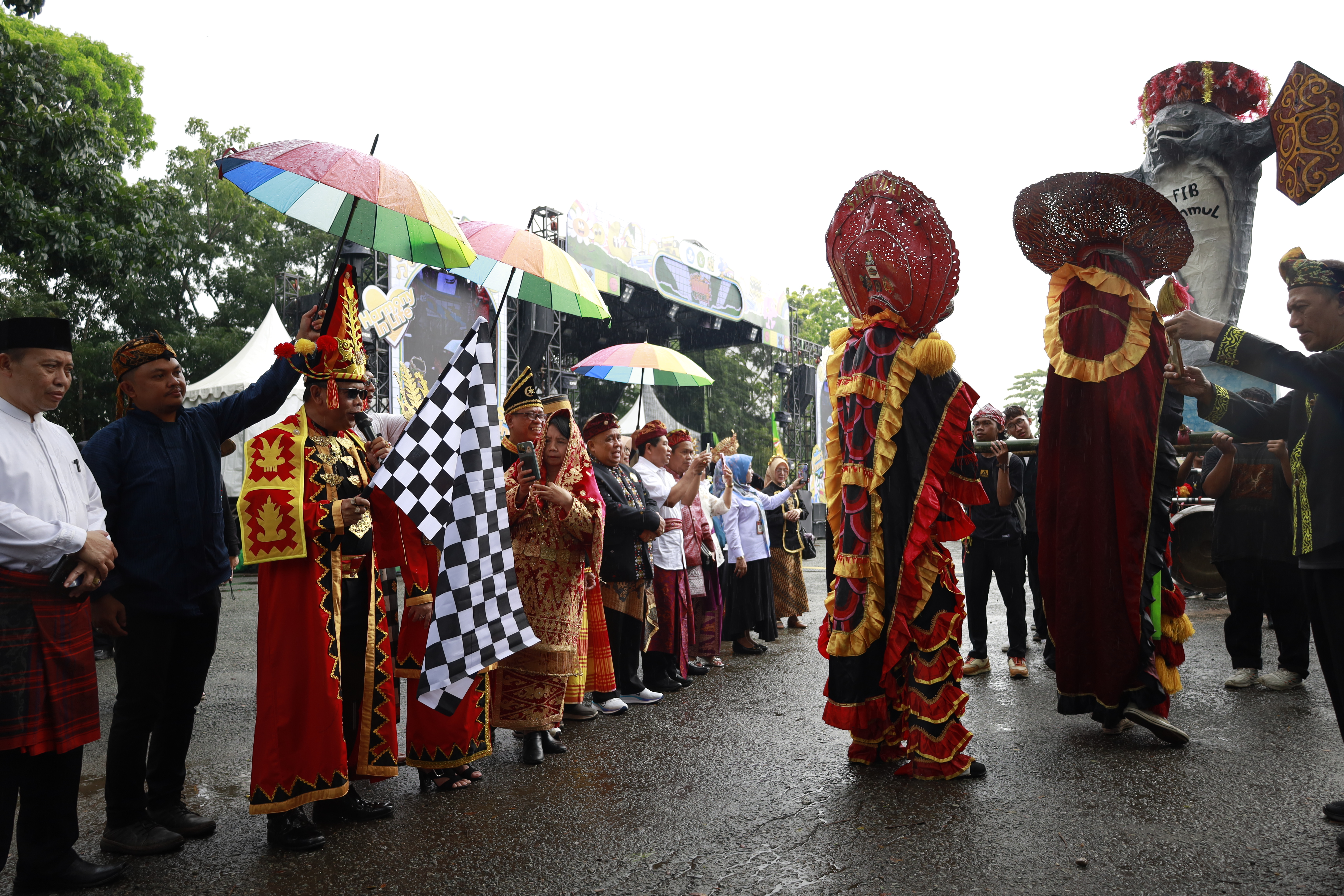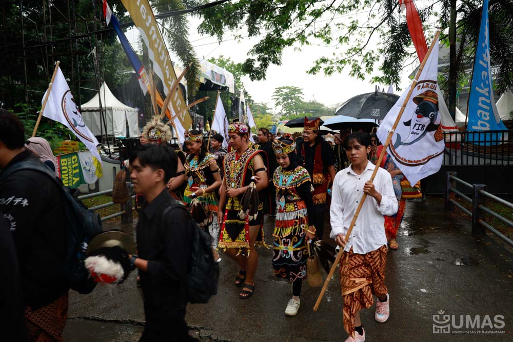 Parade budaya menampilkan berbagai kreativitas peserta yang berjalan sesuai rute yang telah ditentukan panitia. Setiap kontingen juga menyiapkan yel-yel di depan panggung utama yang menjadi objek penilaian dewan juri. Meskipun sempat diguyur hujan, semangat para peserta tidak luntur. Mereka tetap tampil penuh energi, mengekspresikan kekayaan budaya Nusantara dengan kostum, tarian, serta yel-yel khas masing-masing kontingen.