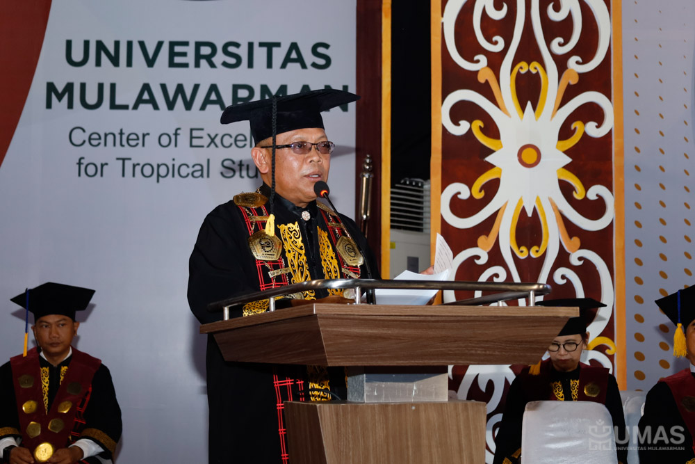 Sementara itu, Rektor UNMUL, Prof. Dr. Ir. H. Abdunnur, M.Si., IPU., ASEAN Eng., dalam sambutannya menyebut pengukuhan 18 guru besar ini sebagai hadiah istimewa bagi Dies Natalis UNMUL ke-63. Rektor mengungkapkan kebanggaan atas pencapaian tersebut yang menegaskan komitmen UNMUL dalam memperkuat riset, inovasi, dan kontribusi pada pembangunan Kalimantan Timur (Kaltim), termasuk dukungan terhadap Ibu Kota Nusantara (IKN).