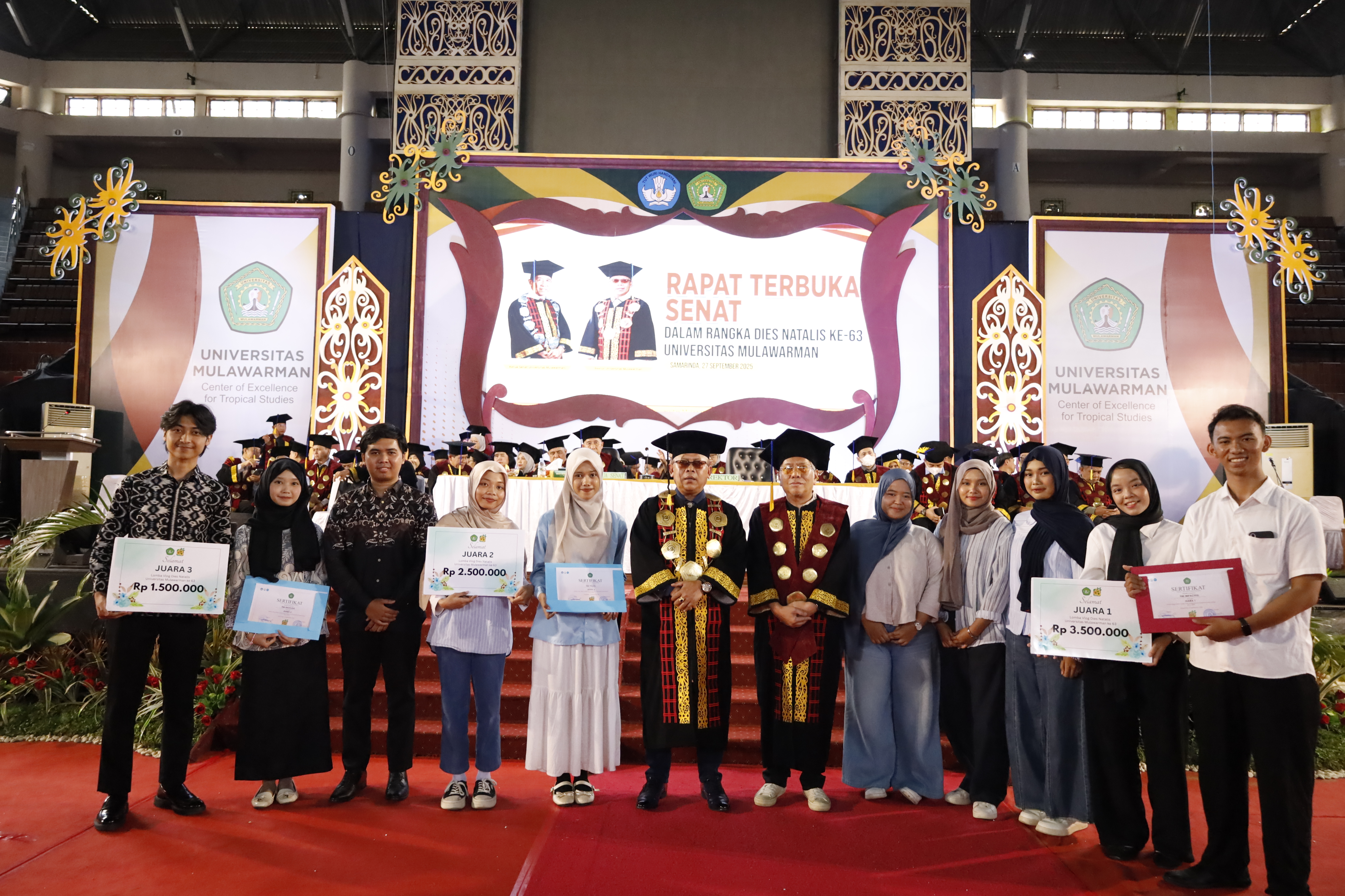 Universitas Mulawarman (UNMUL) menggelar Rapat Senat Terbuka dan Orasi Ilmiah dalam rangka Dies Natalis ke-63 di GOR 27 September UNMUL pada Jumat (27/9/2025) dengan tema Smart UNMUL Harmony in Life. Peringatan hari jadi UNMUL berlangsung khidmat dan penuh semangat dihadiri jajaran pemerintah daerah, mitra kerja sama, dan sivitas akademika UNMUL.