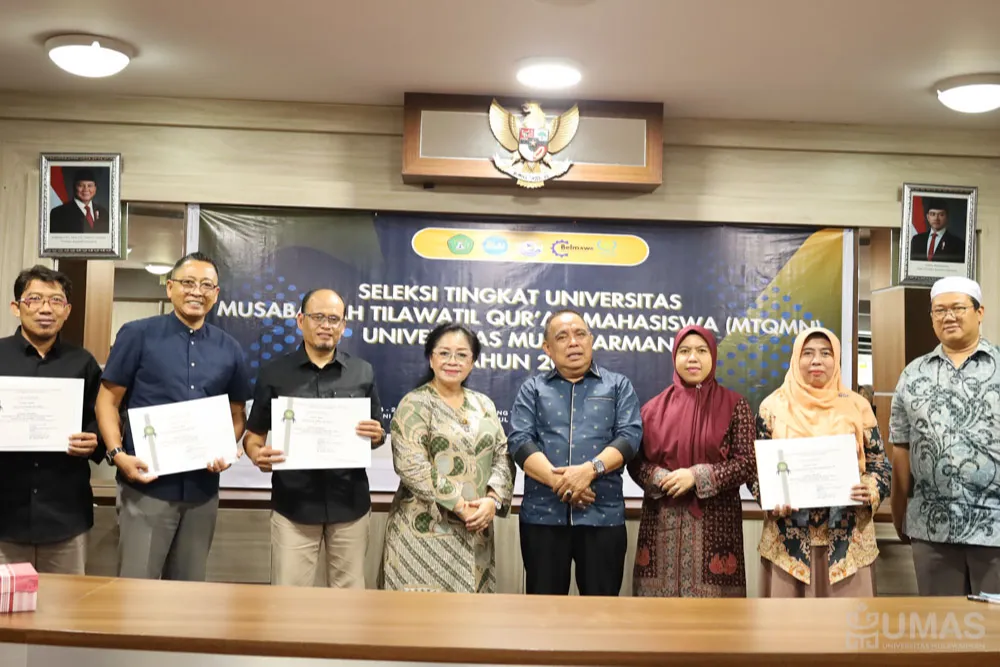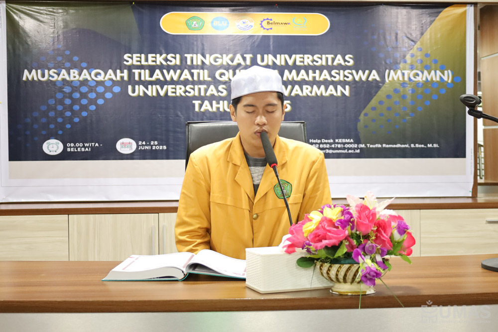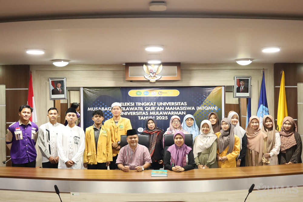 Universitas Mulawarman (UNMUL) resmi menutup rangkaian kegiatan seleksi Musabaqah Tilawatil Qur’an Mahasiswa Nasional (MTQMN) tingkat universitas yang digelar sebagai bagian dari persiapan menuju ajang MTQMN. Kegiatan dilaksanakan di Ruang Rapat I Lantai 3, Rektorat UNMUL pada Kamis (26/6/2025). Kegiatan dihadiri Rektor UNMUL yang diwakili oleh Wakil Rektor Bidang Kemahasiswaan dan Alumni, Prof. Dr. H. Moh. Bahzar, M.Si., Kepala Biro, para wakil dekan, para staf khusus Wakil Rektor Bidang Kemahasiswaan dan Alumni, panitia dan para peserta dari berbagai fakultas di UNMUL.