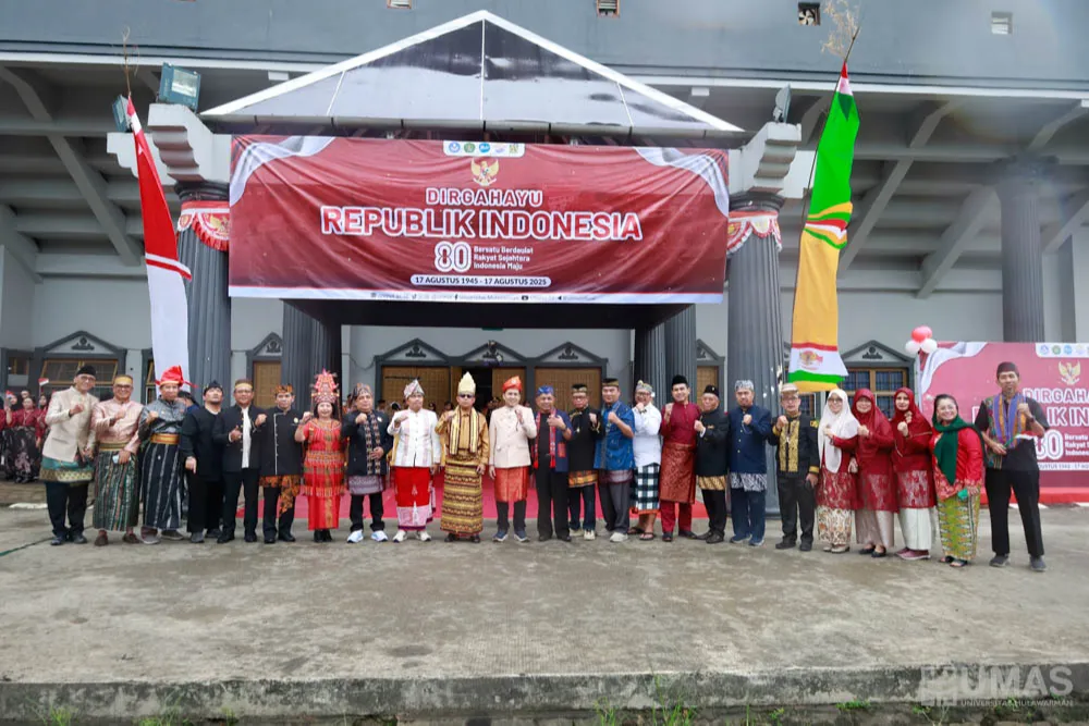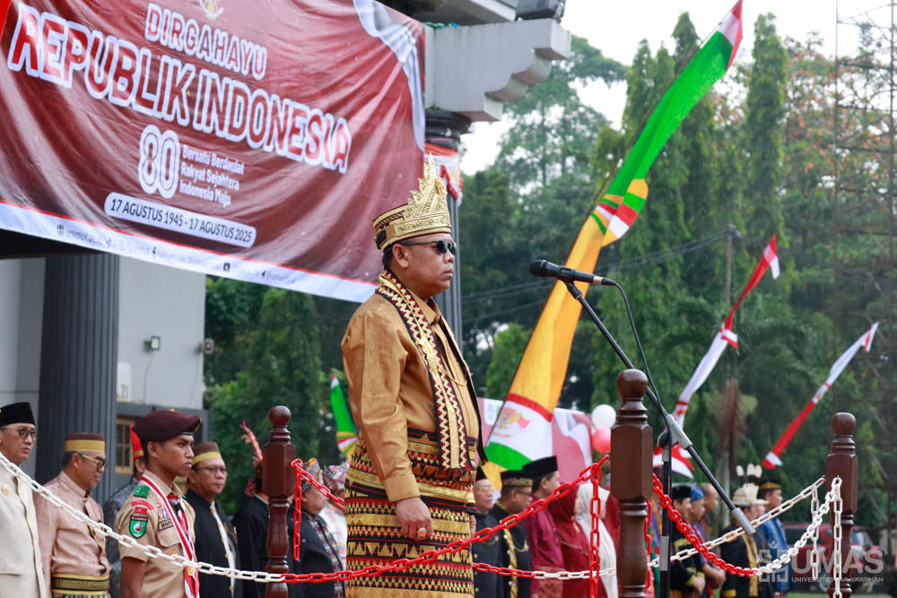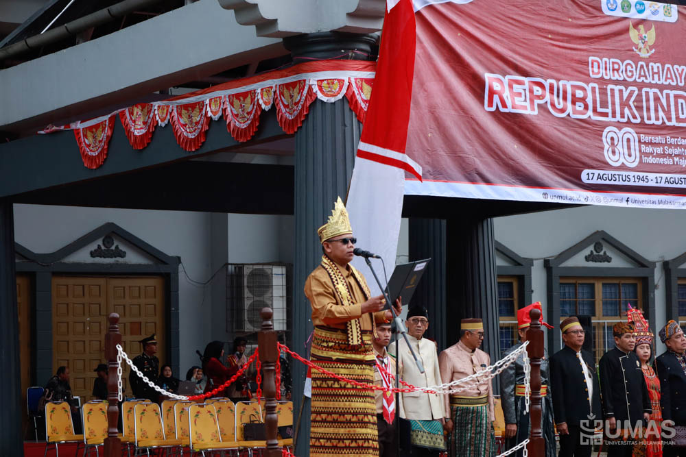 Universitas Mulawarman (UNMUL) menggelar upacara peringatan Hari Ulang Tahun (HUT) ke-80 Kemerdekaan Republik Indonesia (RI) di Halaman GOR 27 September, Minggu (17/8/2025).
