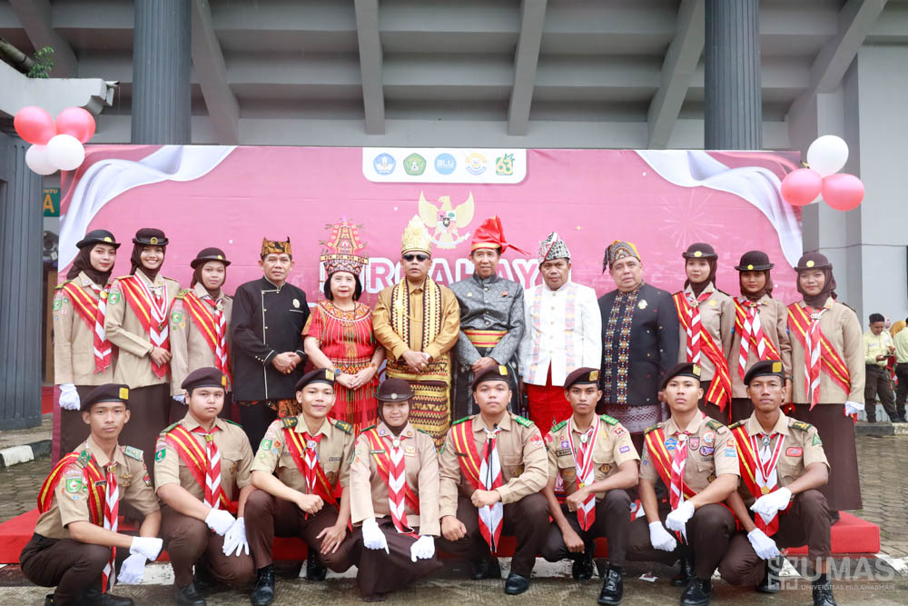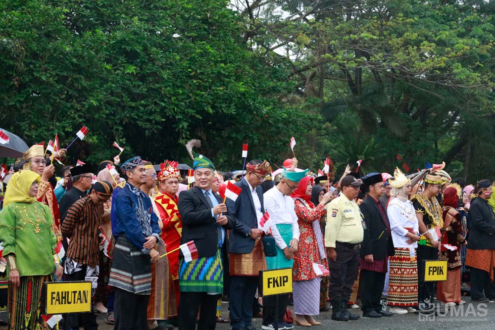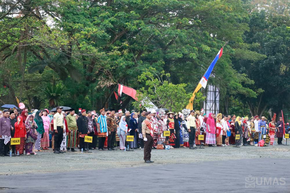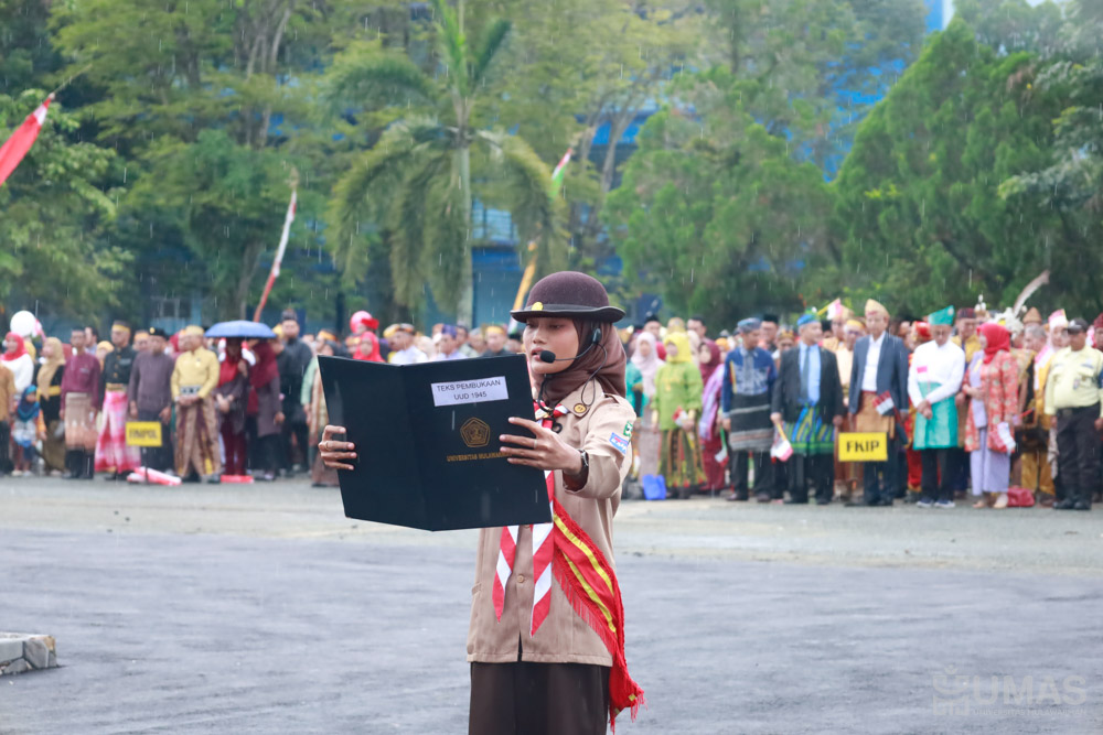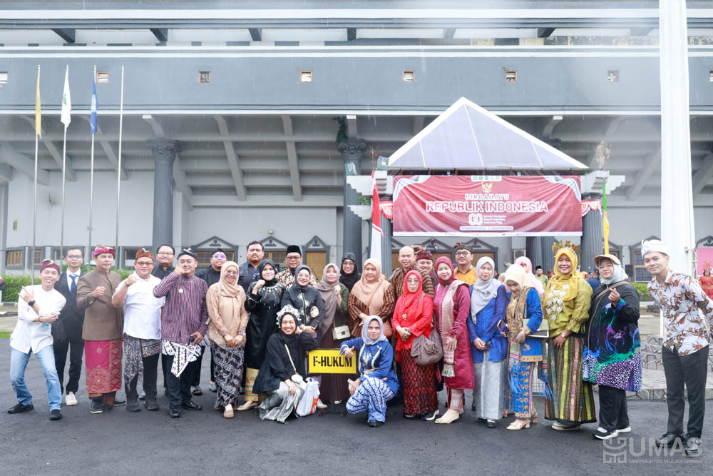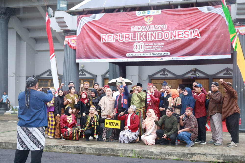 Meski diguyur hujan, upacara berlangsung khidmat dan penuh semangat kebangsaan dengan diikuti jajaran pimpinan universitas, dosen, tenaga kependidikan, mahasiswa, serta pasukan pengibar bendera.