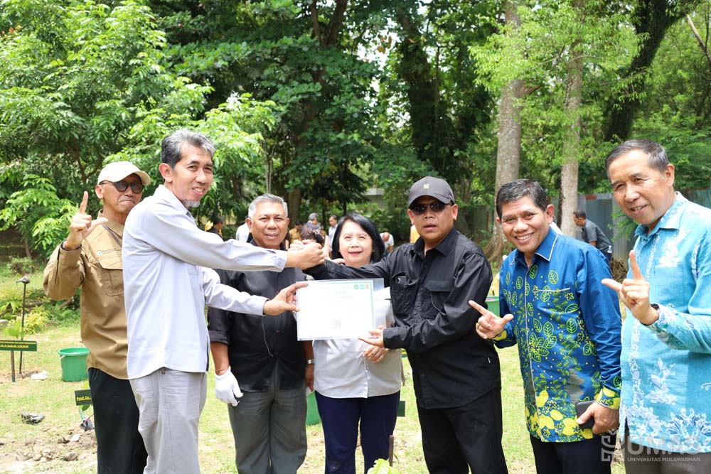Dalam laporannya, Dekan FKLT, Prof. Dr. Irawan Wijaya Kusuma, S.Hut., M.P., menyampaikan bahwa kegiatan ini merupakan bagian dari komitmen UNMUL dalam mendukung program penghijauan sekaligus pengurangan emisi karbon menuju target net zero emission tahun 2030.