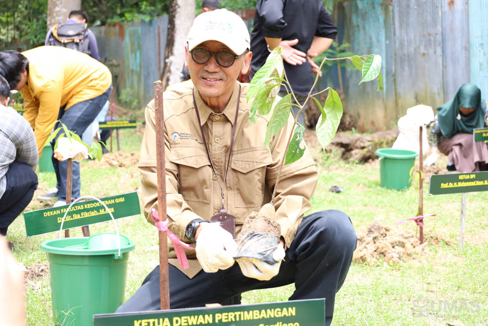 “UNMUL harus tampil sebagai kampus biodiversitas, yang tidak hanya hijau dan rindang, tetapi juga menjadi representasi ekosistem hutan tropis lembap yang khas Kalimantan. Kegiatan penanaman pohon ini adalah bentuk kontribusi nyata kita untuk menjaga bumi, sekaligus memberi nilai tambah bagi sivitas akademika,” ungkap Rektor.