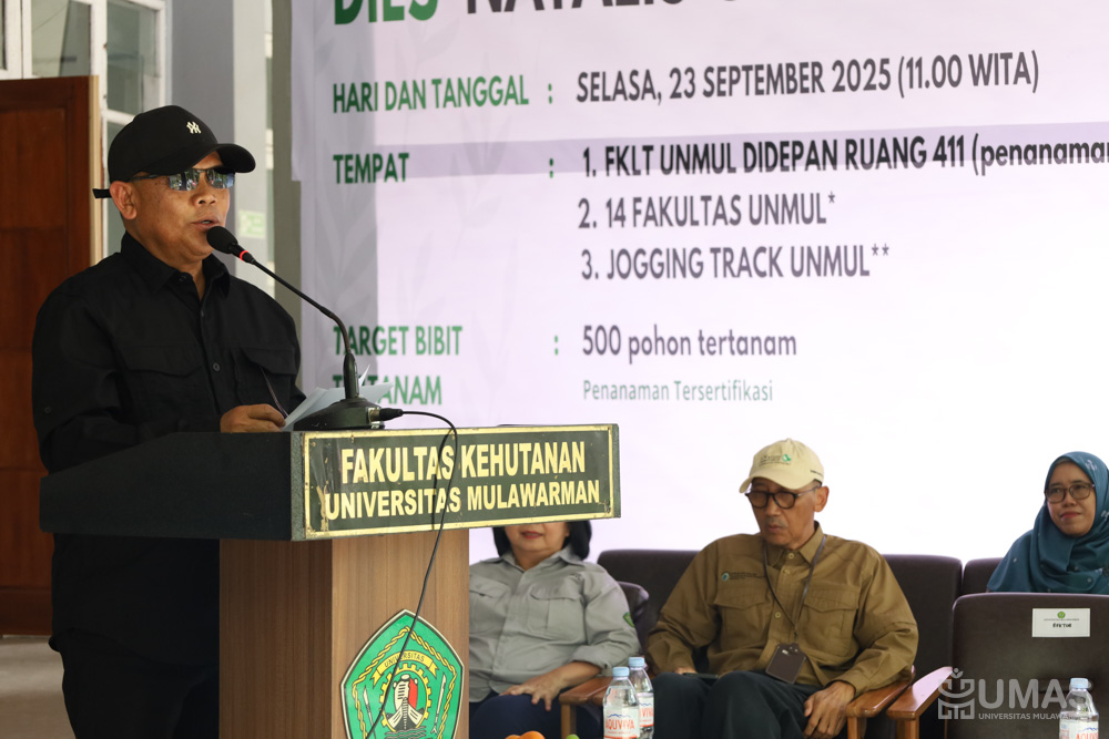 Universitas Mulawarman (UNMUL) melalui Fakultas Kehutanan dan Lingkungan Tropis (FKLT) menggelar kegiatan penanaman pohon bersama dalam rangkaian peringatan Dies Natalis ke-63 UNMUL tahun 2025, di Lokasi FKLT di Gedung Pascasarjana Kehutanan, Selasa (23/9/2025).